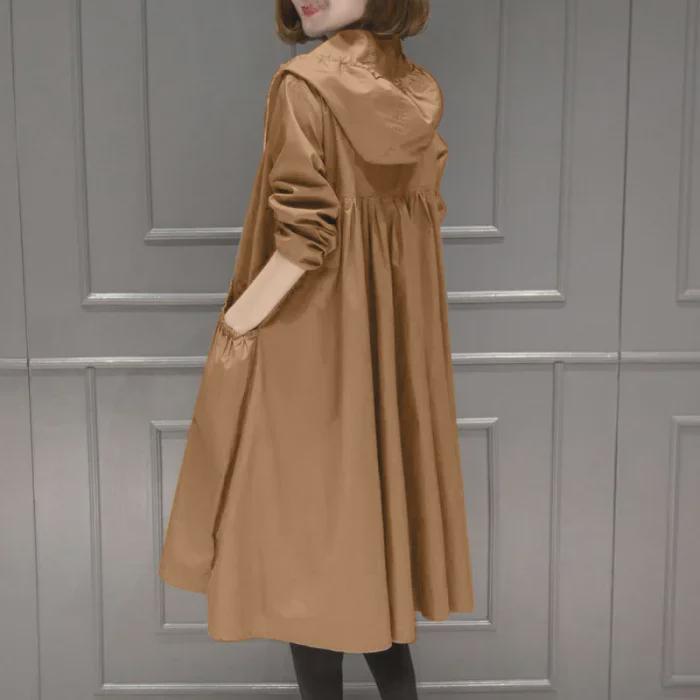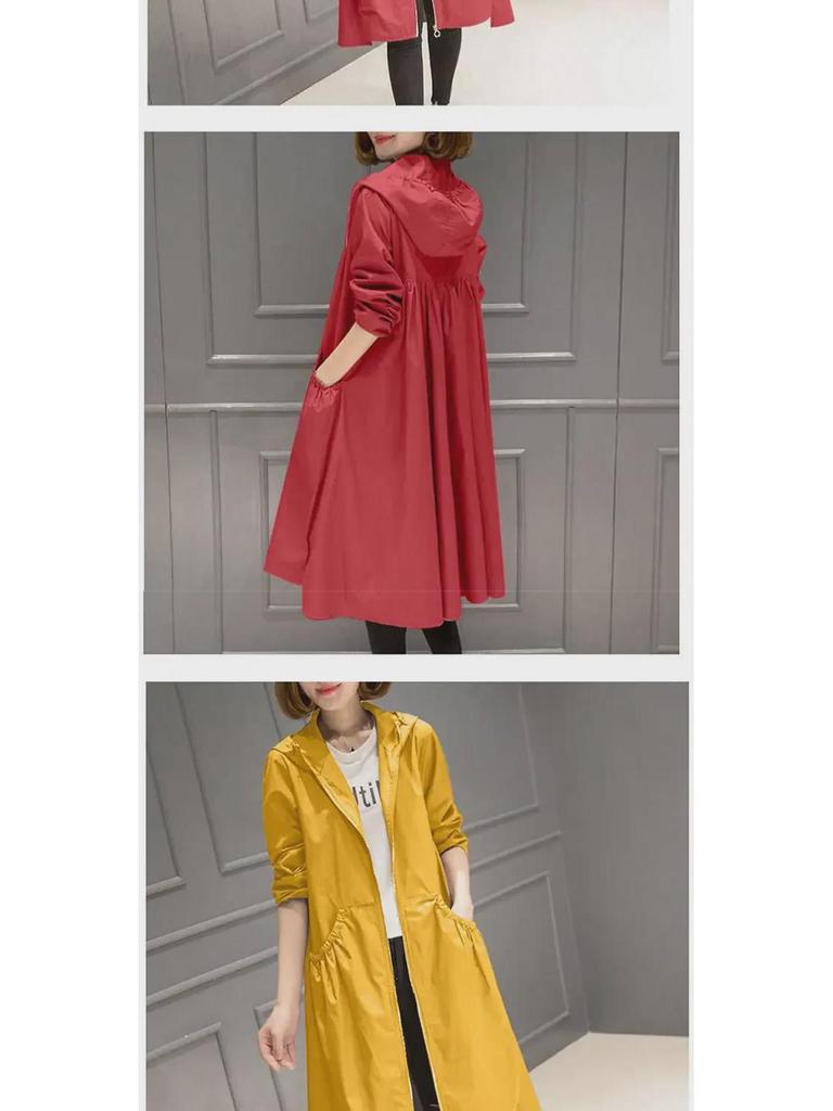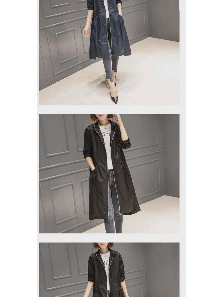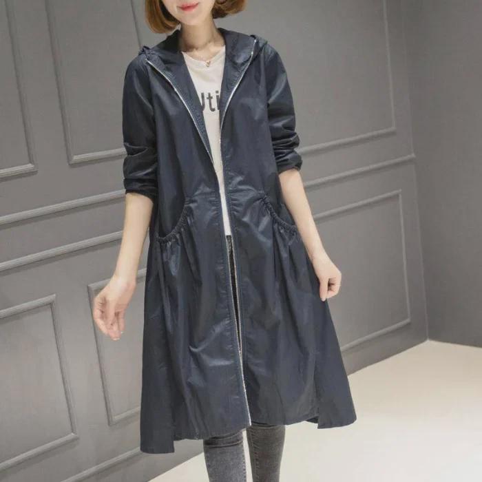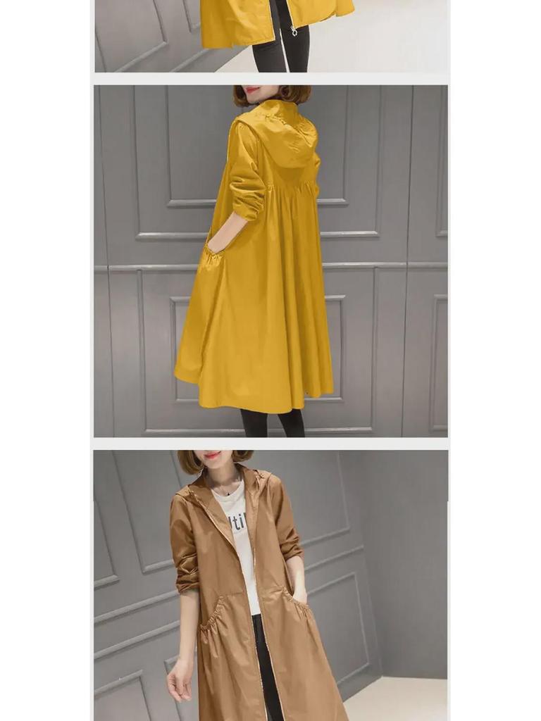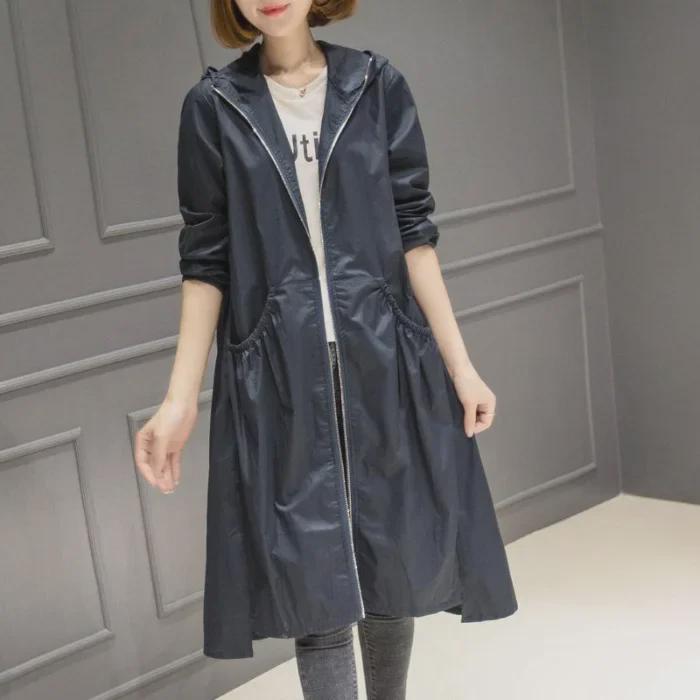 2025 Корейская модная женская ветровка средней длины с капюшоном