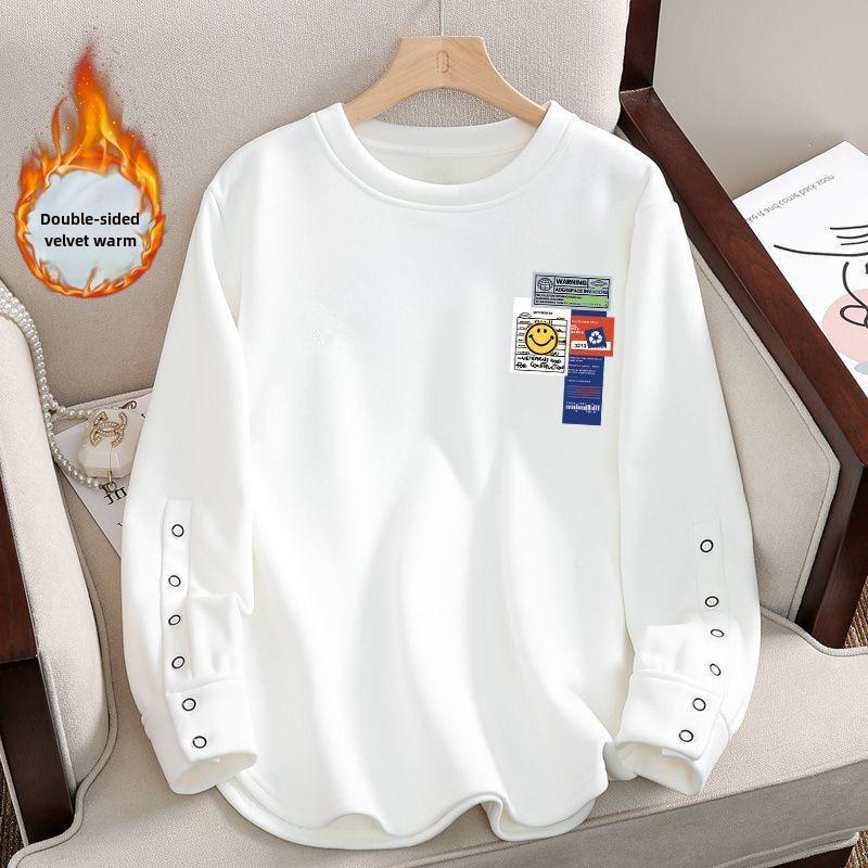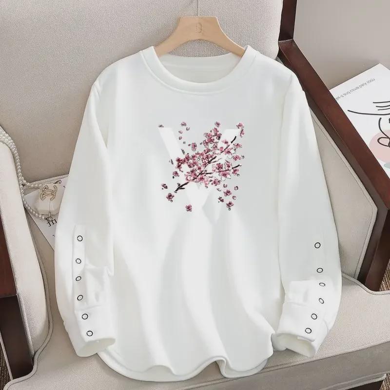 Женская футболка свободного кроя из 100% хлопка в корейском стиле с длинными рукавами и круглым вырезом, новинка 2024 года.