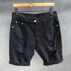 «Мужские белые рваные джинсовые шорты 2024 года из уличной моды Гонконга — повседневный летний тренд»