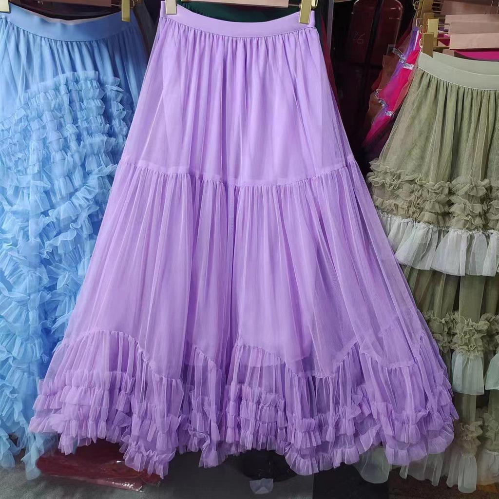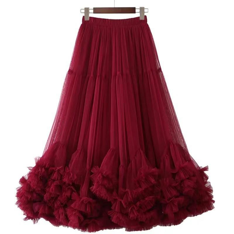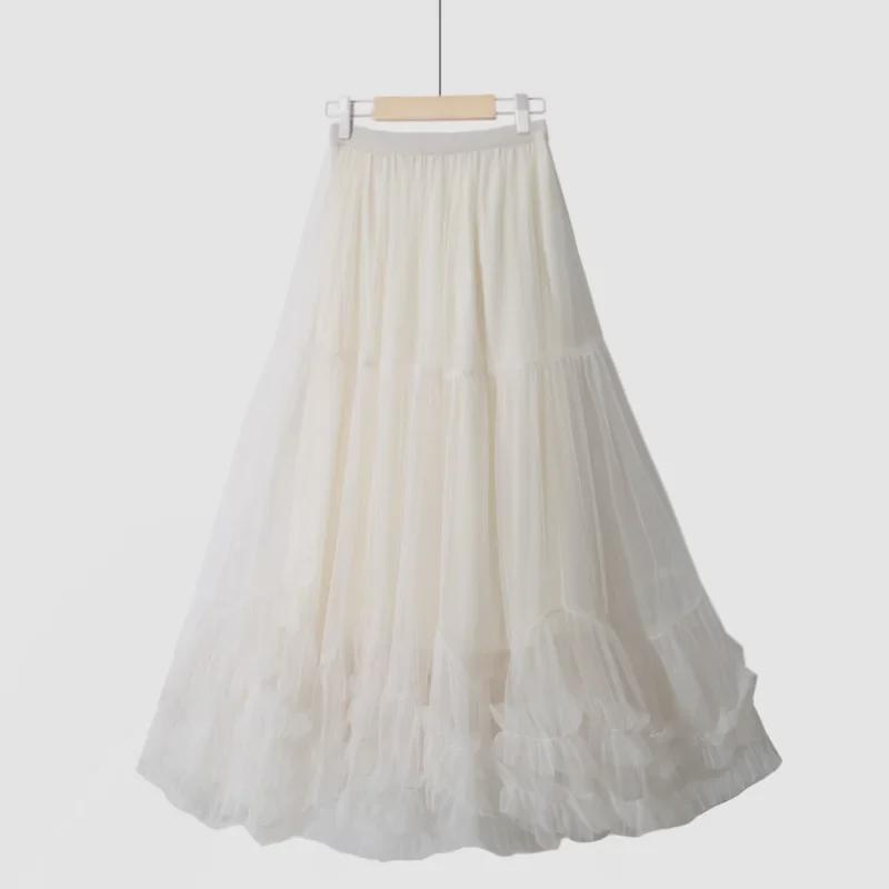 «Пышная юбка А-силуэта с высокой талией и отстрочкой по краю деревянными ушками»