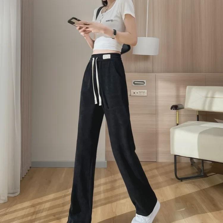 Женские широкие брюки из бархата и синели - осень/зима 2023 г., утолщенные, большого размера, облегающие, прямого покроя