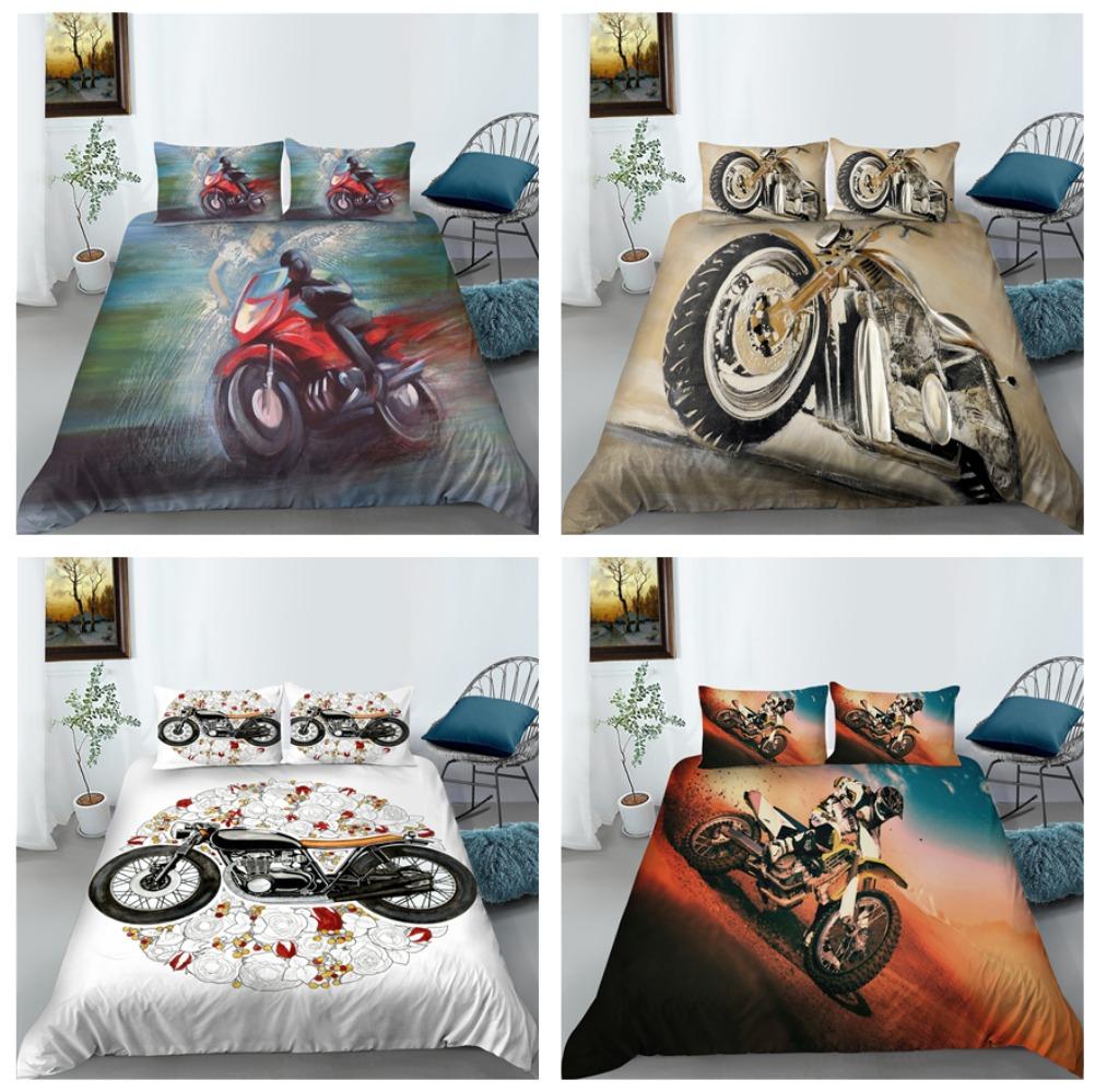 Пододеяльник с рисунком мотоцикла King Queen Down, комплект постельного белья с изображением мотоцикла для подростков и мужчин, пододеяльник для занятий спортом на открытом воздухе 2/3 шт.