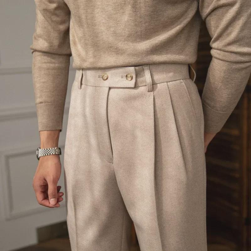 "Мужские шерстяные брюки с высокой талией": Теплые, прямые, однотонные брюки для осени/зимы.