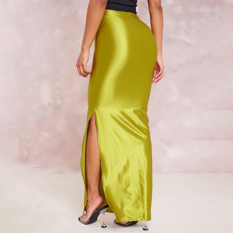 Европейские и американские женские летние однотонные юбки-макси с разрезом и зауженной посадкой