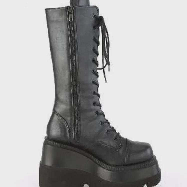 Женские готические сапоги на толстой подошве для байкеров 43-го размера - с большой головкой, узкие, длиной до колена