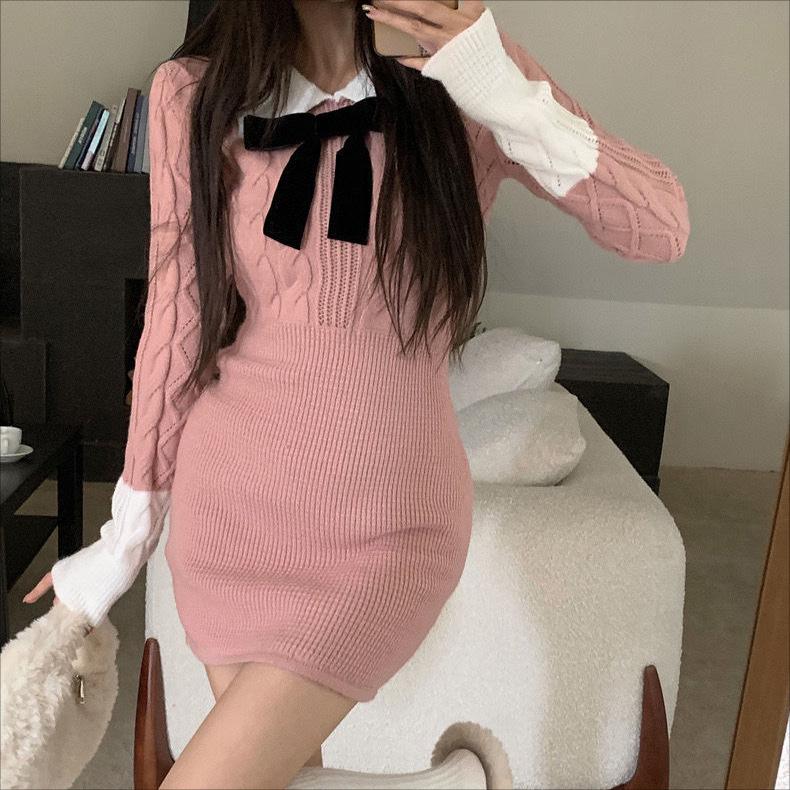 2022 Новая женская трикотажная юбка с длинным рукавом в студенческом стиле — корейская версия для осени/зимы