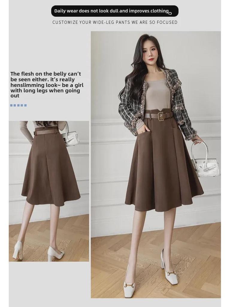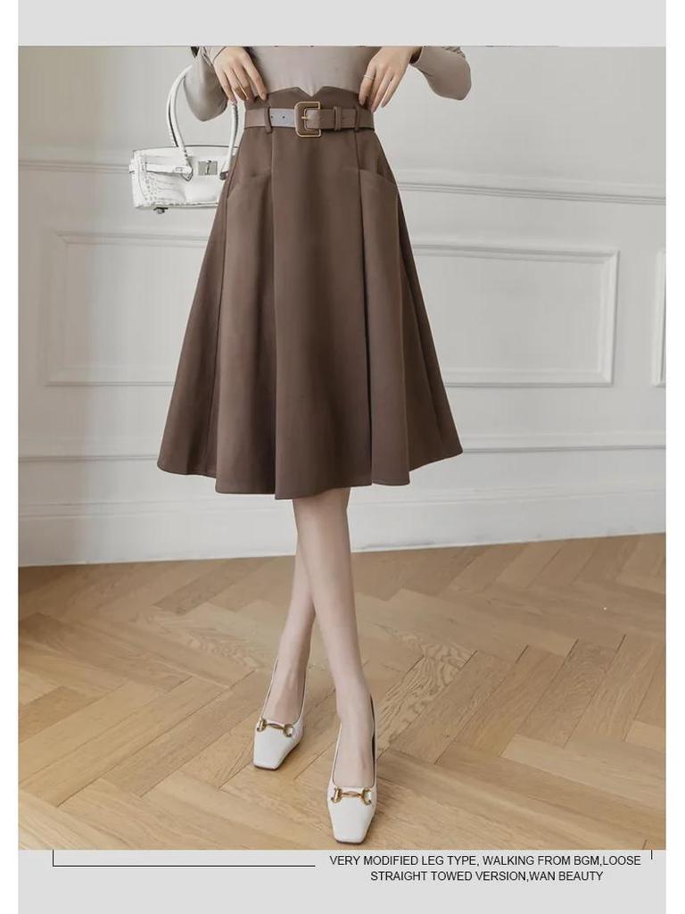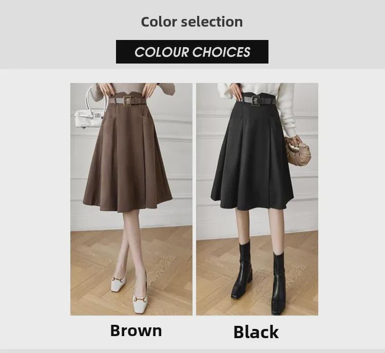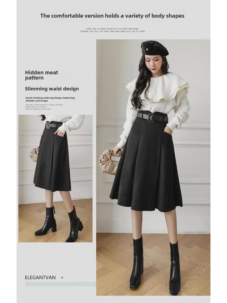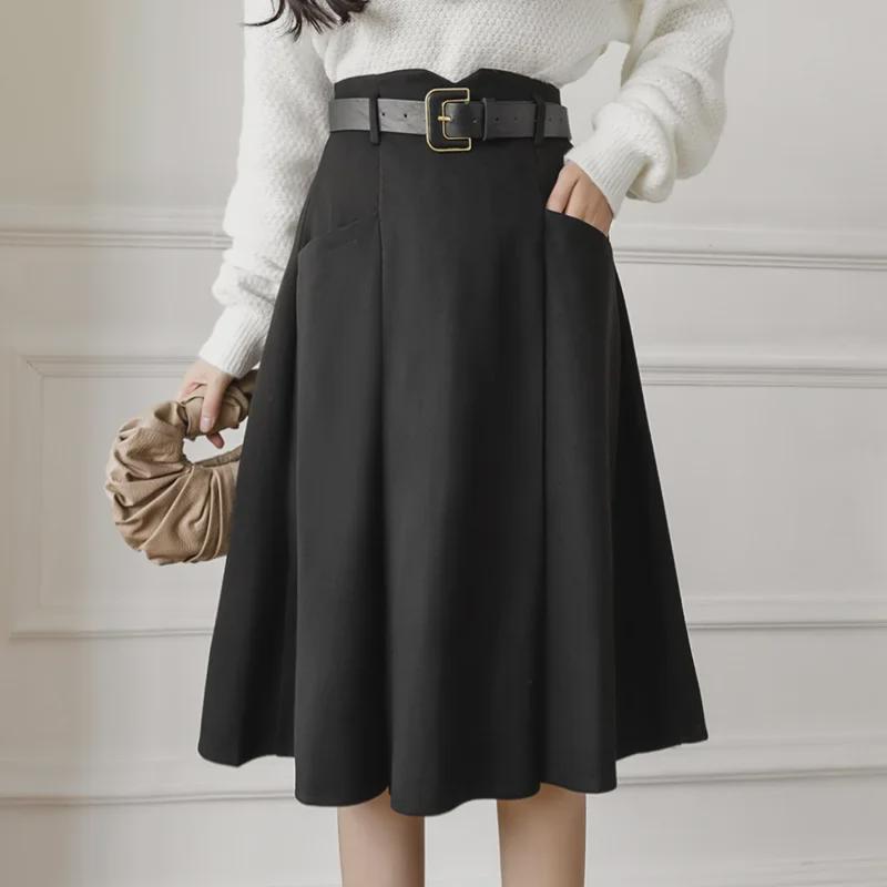 Женская шерстяная юбка А-силуэта во французском стиле - средняя длина, высокая талия, осень/зима