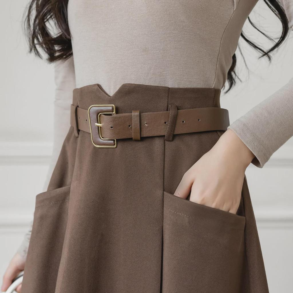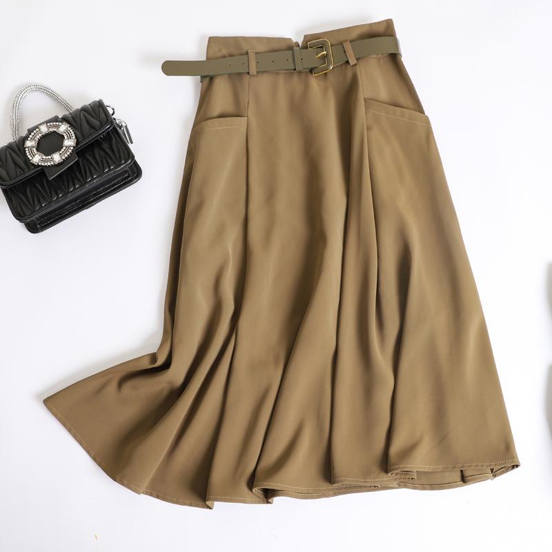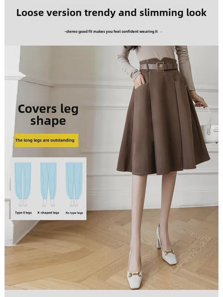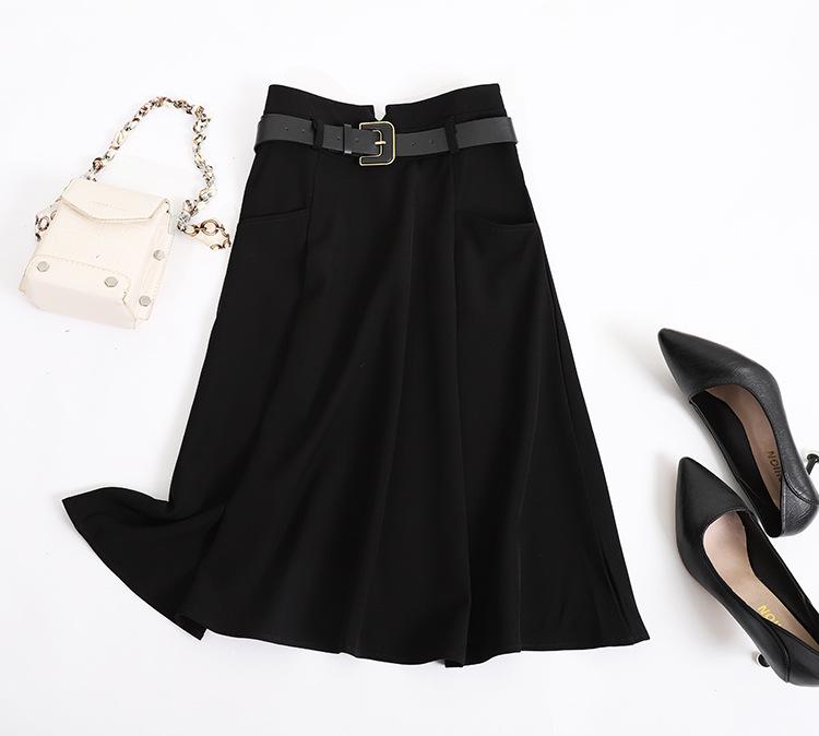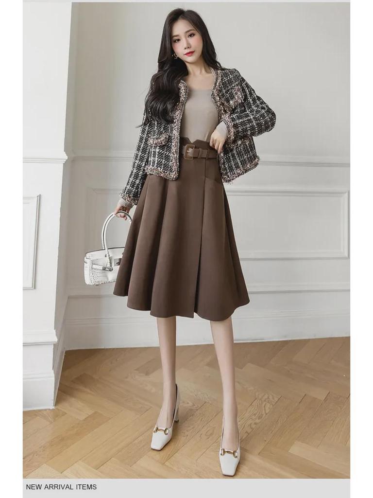 Женская шерстяная юбка А-силуэта во французском стиле - средняя длина, высокая талия, осень/зима
