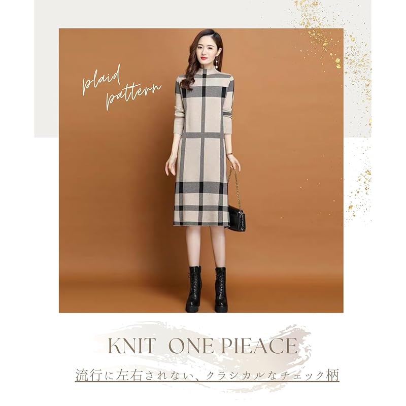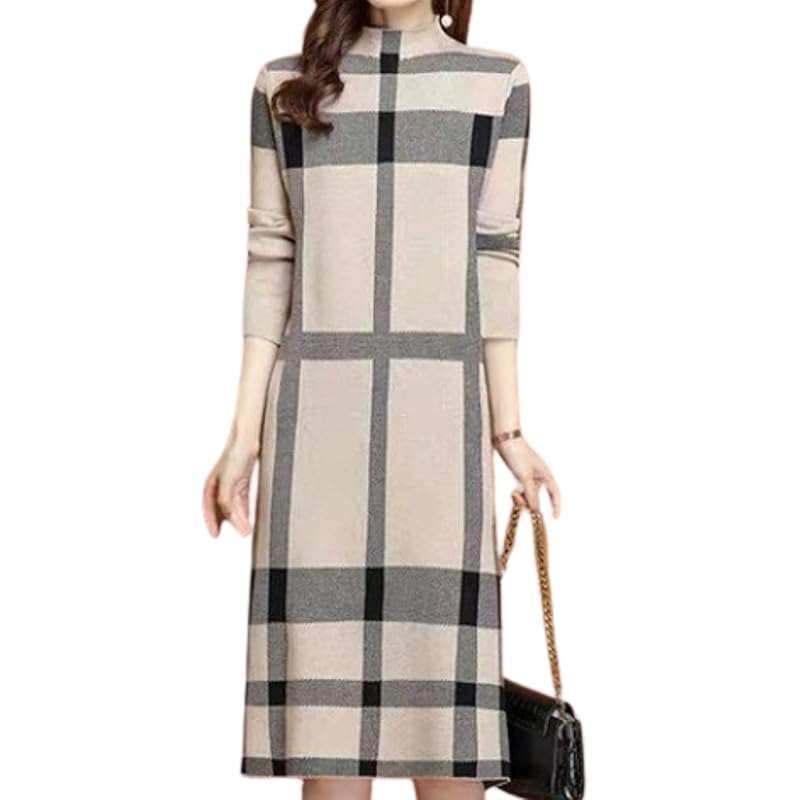 [Теплое зимнее платье] Теплое клетчатое платье из трикотажного полотна, которое отлично подойдет для зимы. Изготовлено из теплого трикотажного материала, который незаменим осенью и зимой, отлично сохраняет тепло. Горловина бутылки сохраняет шею в тепле и позволяет вам выглядеть модно даже в холодные дни.