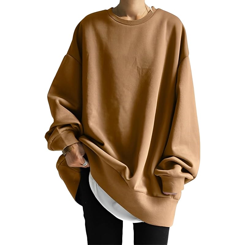 [🥨Простая и удобная в носке толстовка] Представляем свободный и свободный свитер. Простой дизайн позволяет легко сочетать его с любым стилем. Изготовлена из мягкой и гладкой ткани для свободной посадки! Свободный силуэт создает зрелый образ, создавая непринужденное, но стильное впечатление. ◎ Чистый круглый вырез обеспечивает комфорт, не стягивая шею. Манжеты и подол выполнены в рубчик, что создает приятный общий баланс. Благодаря простому дизайну он отлично сочетается как с брюками, так и с юбками. Его легко включить в повседневный наряд, и это полезная вещь, которую всегда нужно иметь под рукой.