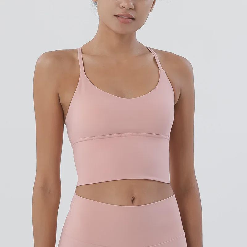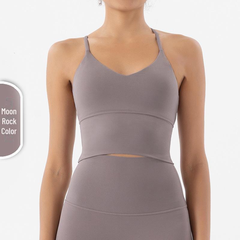 «Двусторонний спортивный бюстгальтер для йоги телесного цвета с пескоструйной обработкой — сексуальный топ с открытой спиной для фитнеса»