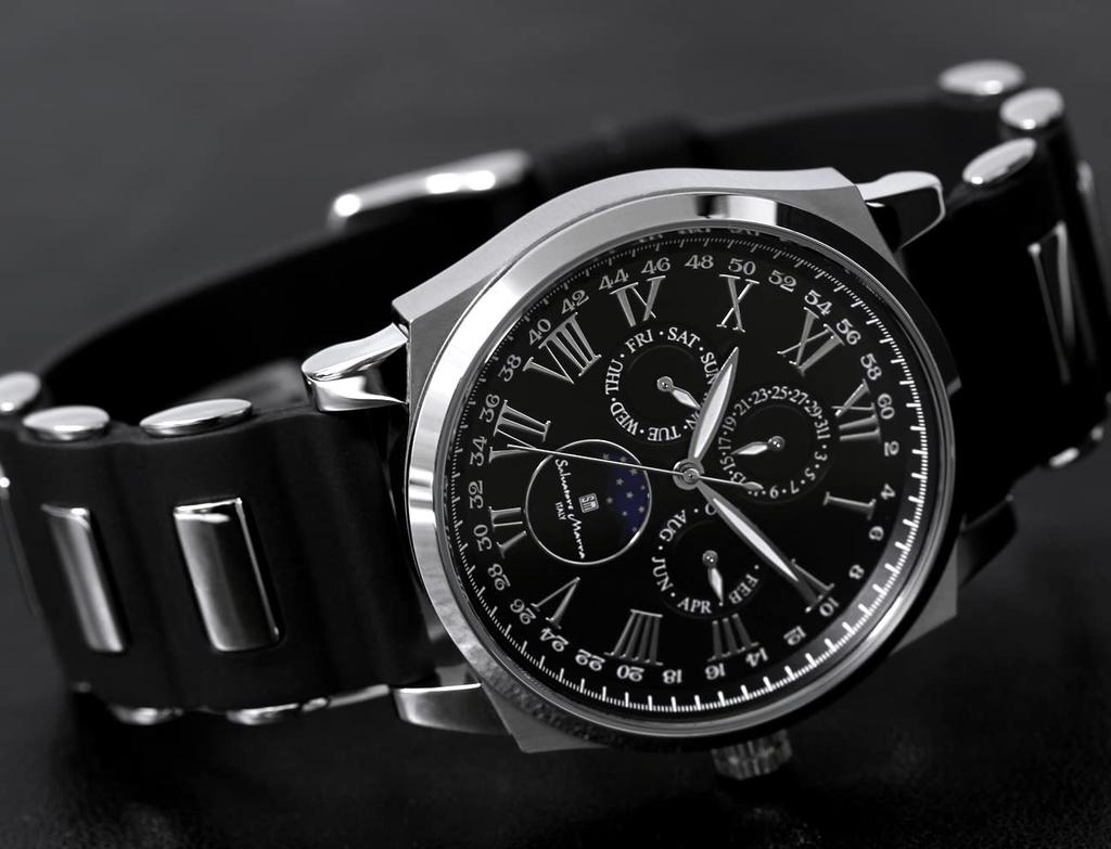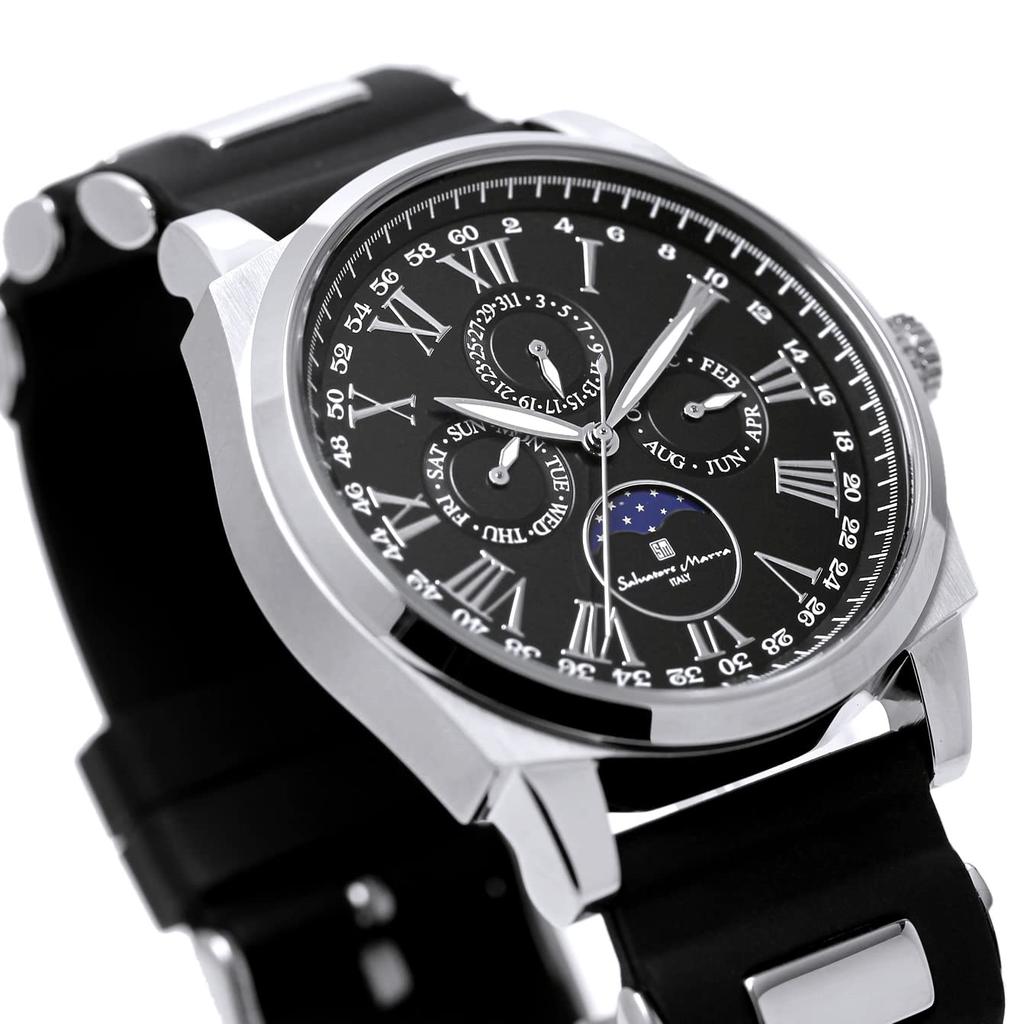 Часы Moon Phase Multi Calendar 5 ATM Водонепроницаемые Деловые Формальные Резиновый Ремень Ограниченная Модель Черный Серебристый [Salvatore Mara] Мужские SM22105R-SSBK
