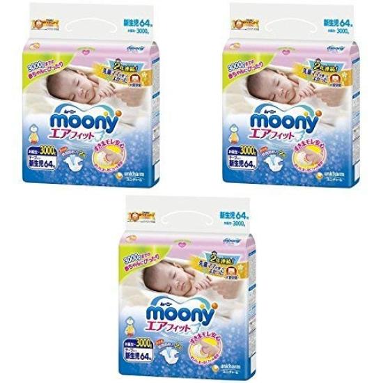 Moony Air Fit Newborn Birth 64 шт., размер ленты, более 3 шт. [Оптовая закупка] ~3000 г (Меньший новорожденный)