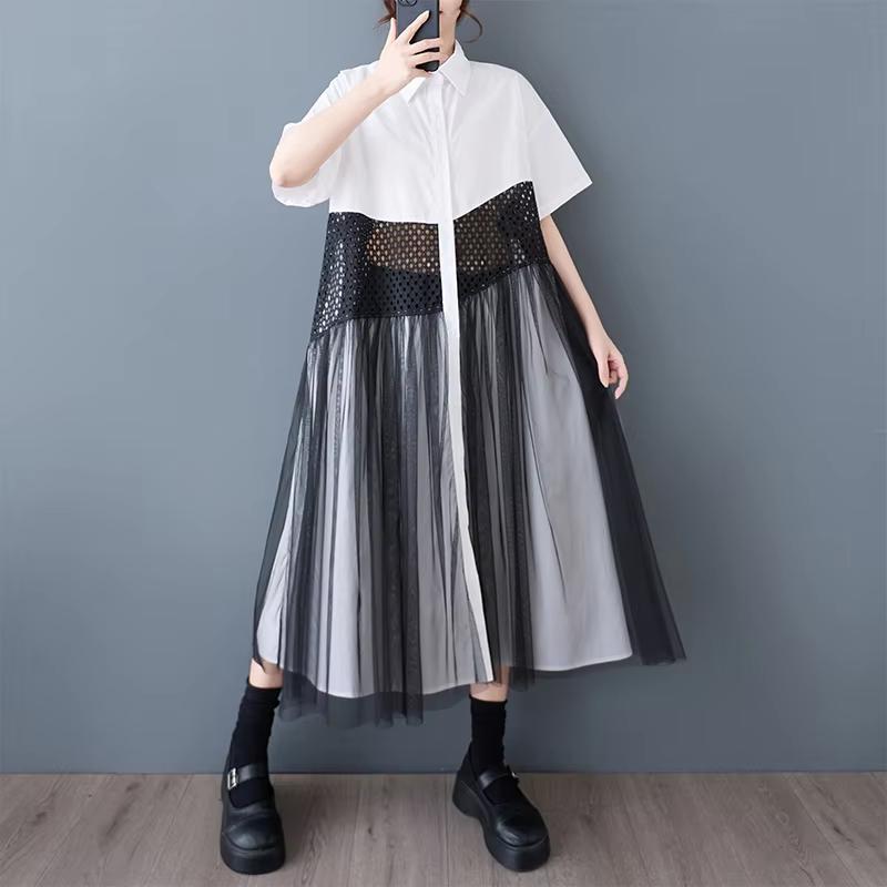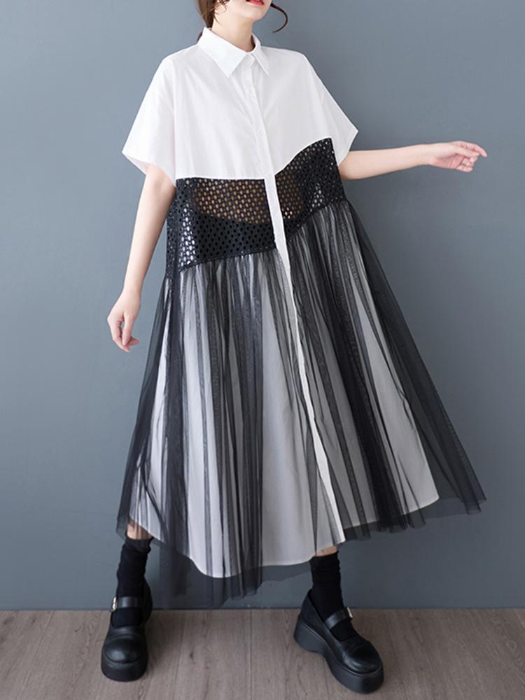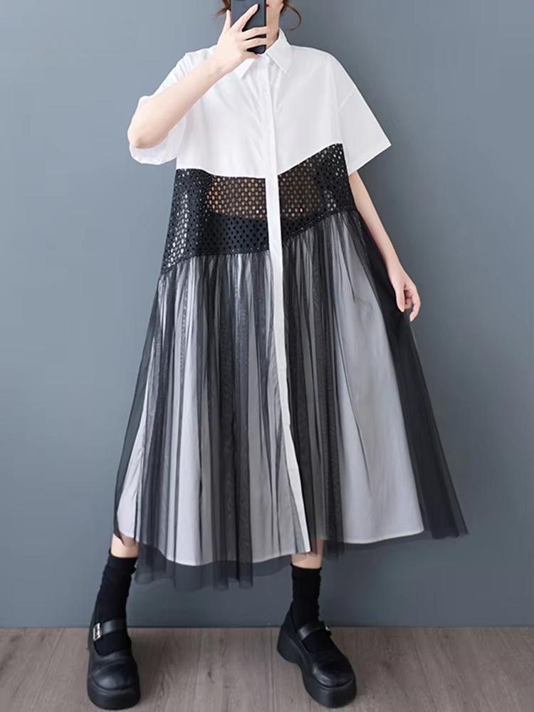 Xitao Однобортное платье в сеточку в стиле пэчворк GYX1566