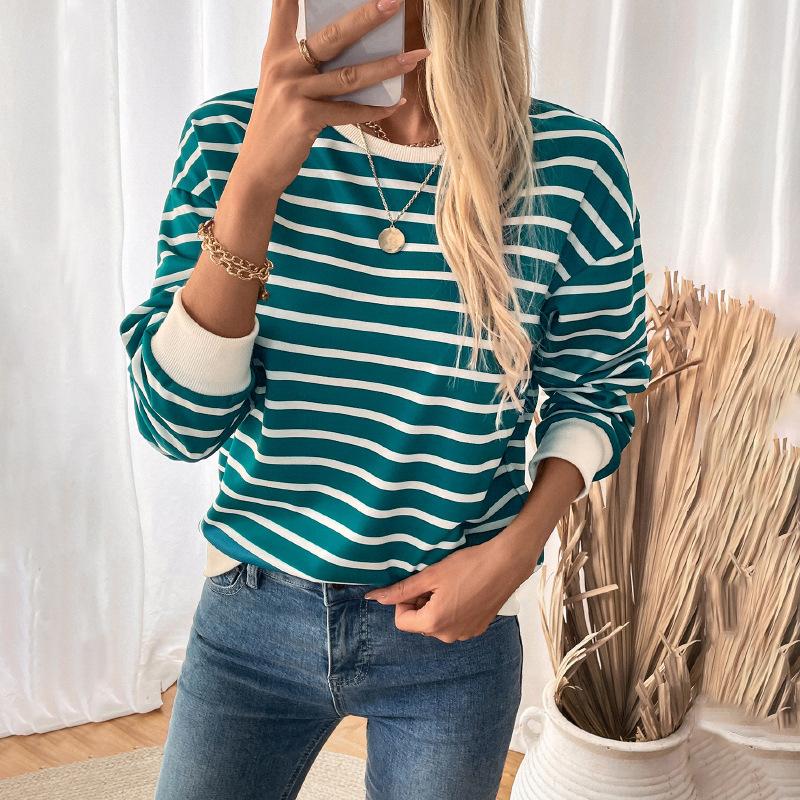 Женский топ в тонкую полоску, осенний свитер с круглым вырезом и длинными рукавами, свободная спортивная толстовка