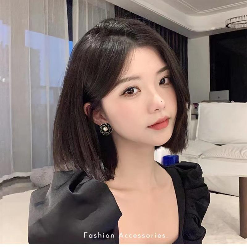 Корейские женские маленькие ароматные серьги-гвоздики с камелией, темпераментные черные, белые, эмалевые, жемчужные, цветочные серьги, женские ювелирные изделия, подарок
