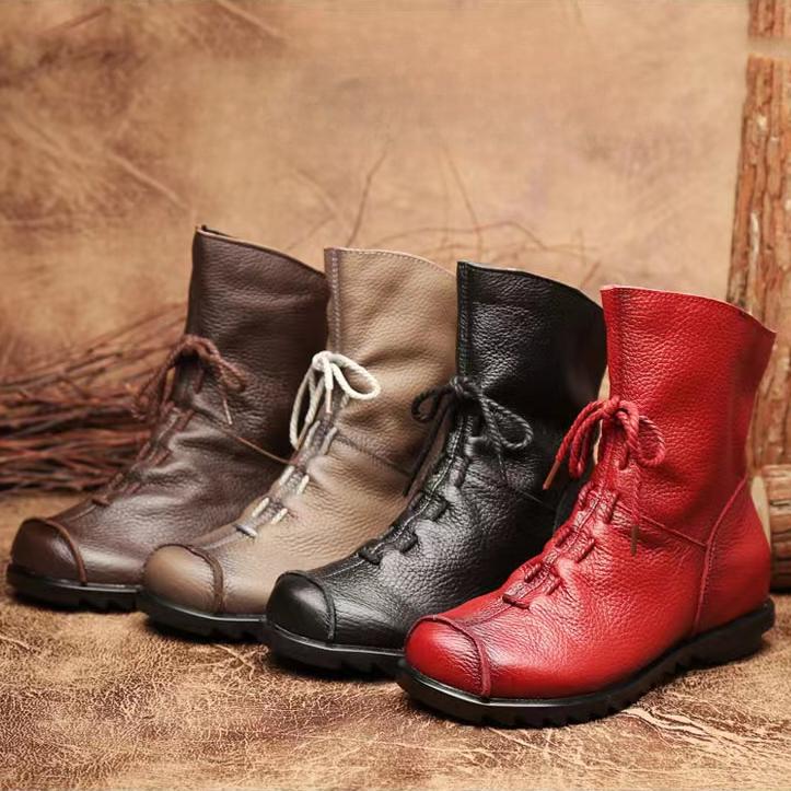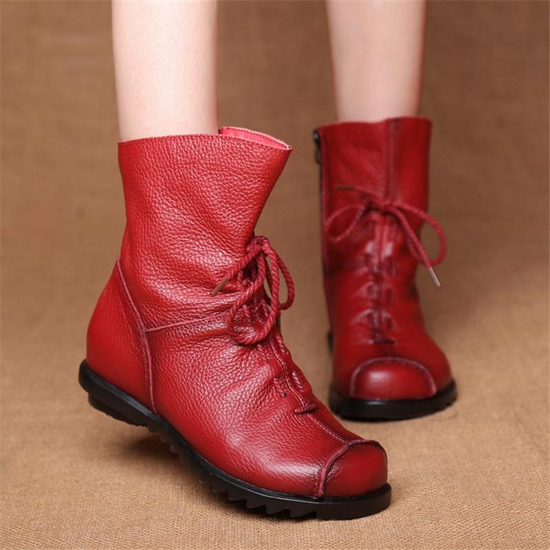 Плюшевые женские короткие ботинки из натуральной кожи, повседневные осенне-зимние женские ботинки в стиле ретро, непромокаемые кожаные теплые зимние сапоги