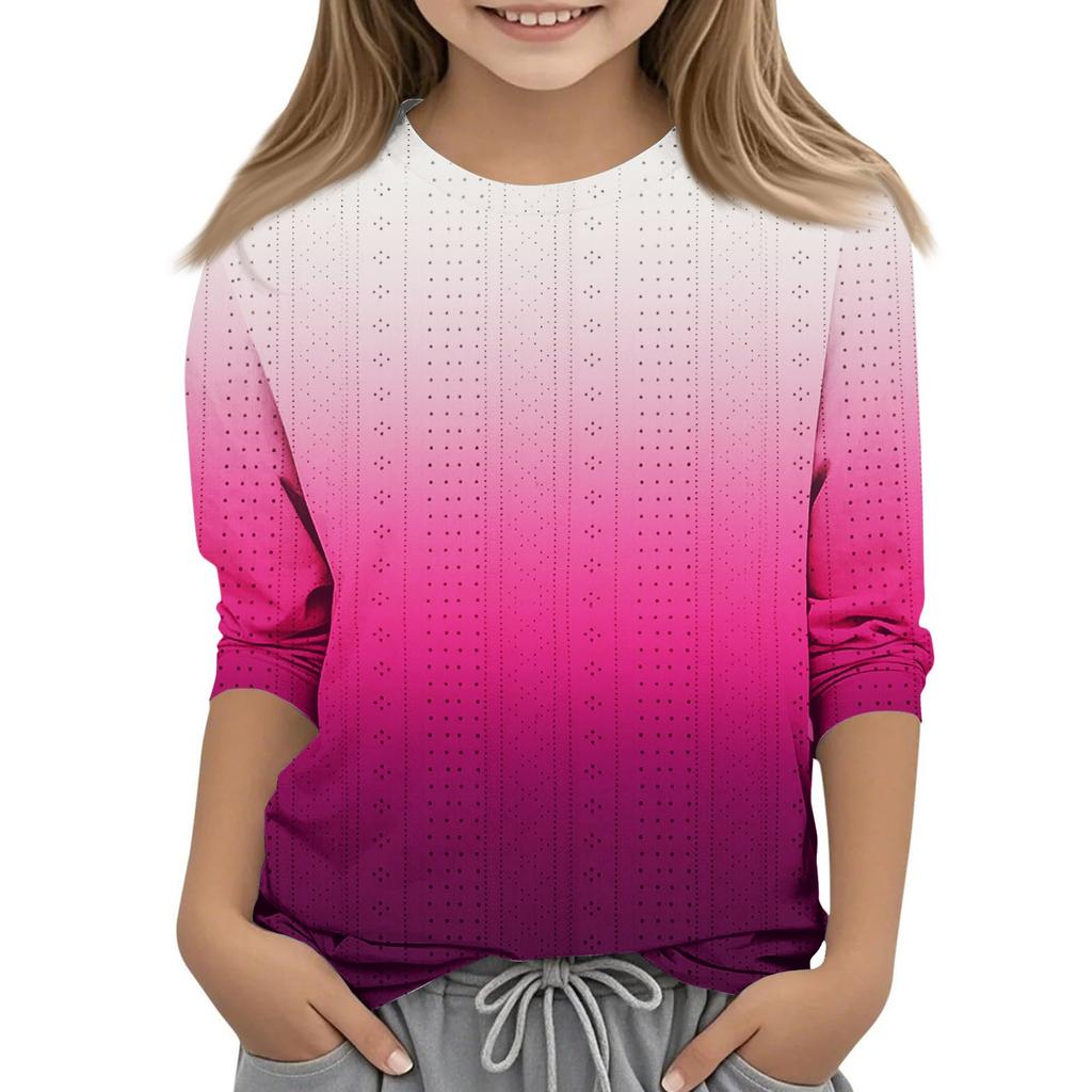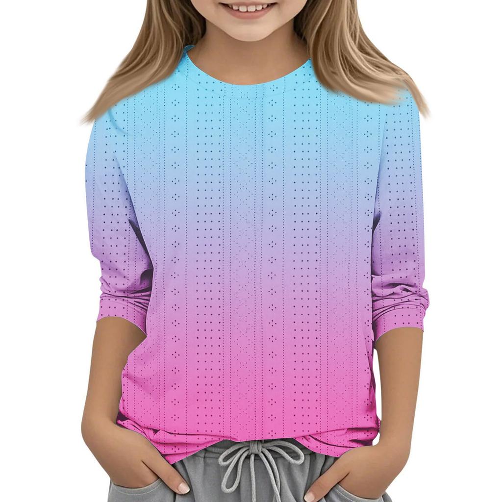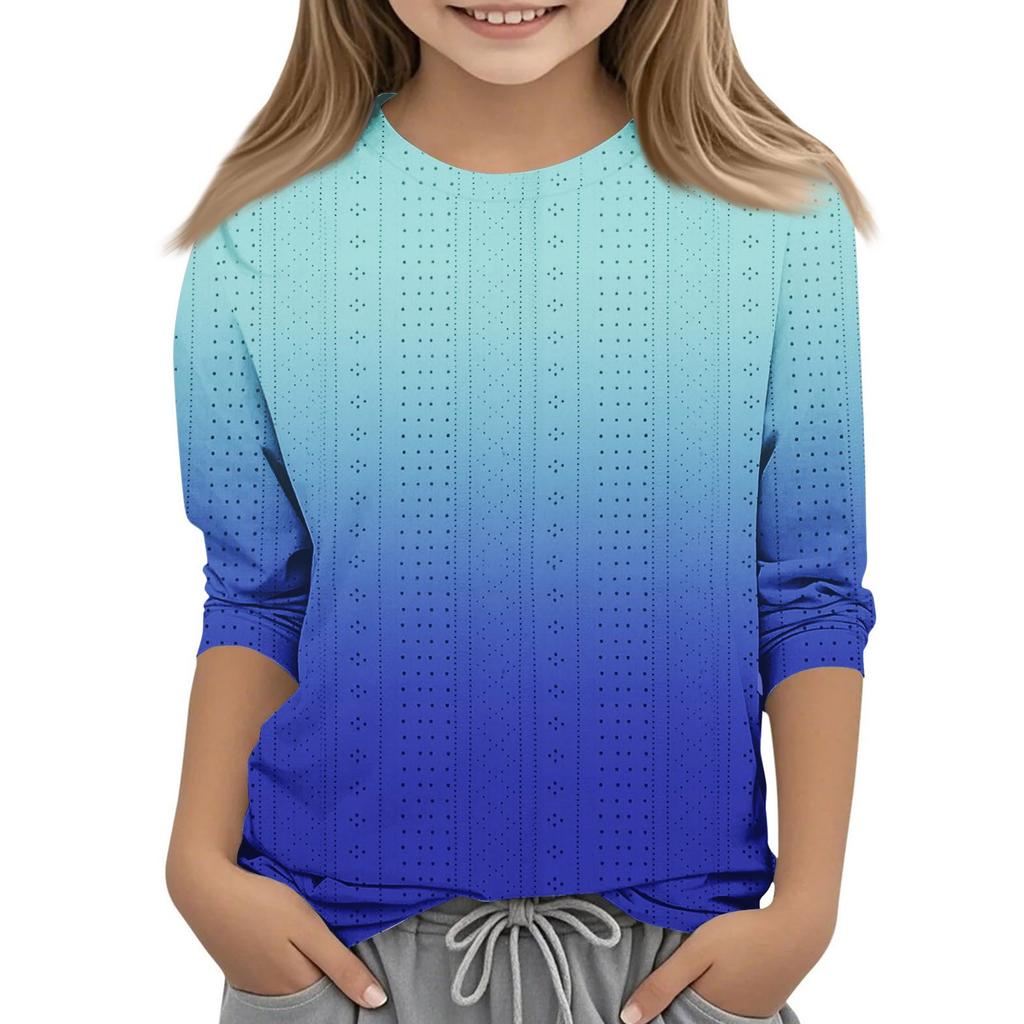 Топы с принтом для девочек 5-16 лет с круглым вырезом и рукавами 3/4 Футболки Модные топы Наряды Футболки
