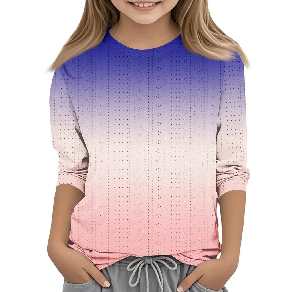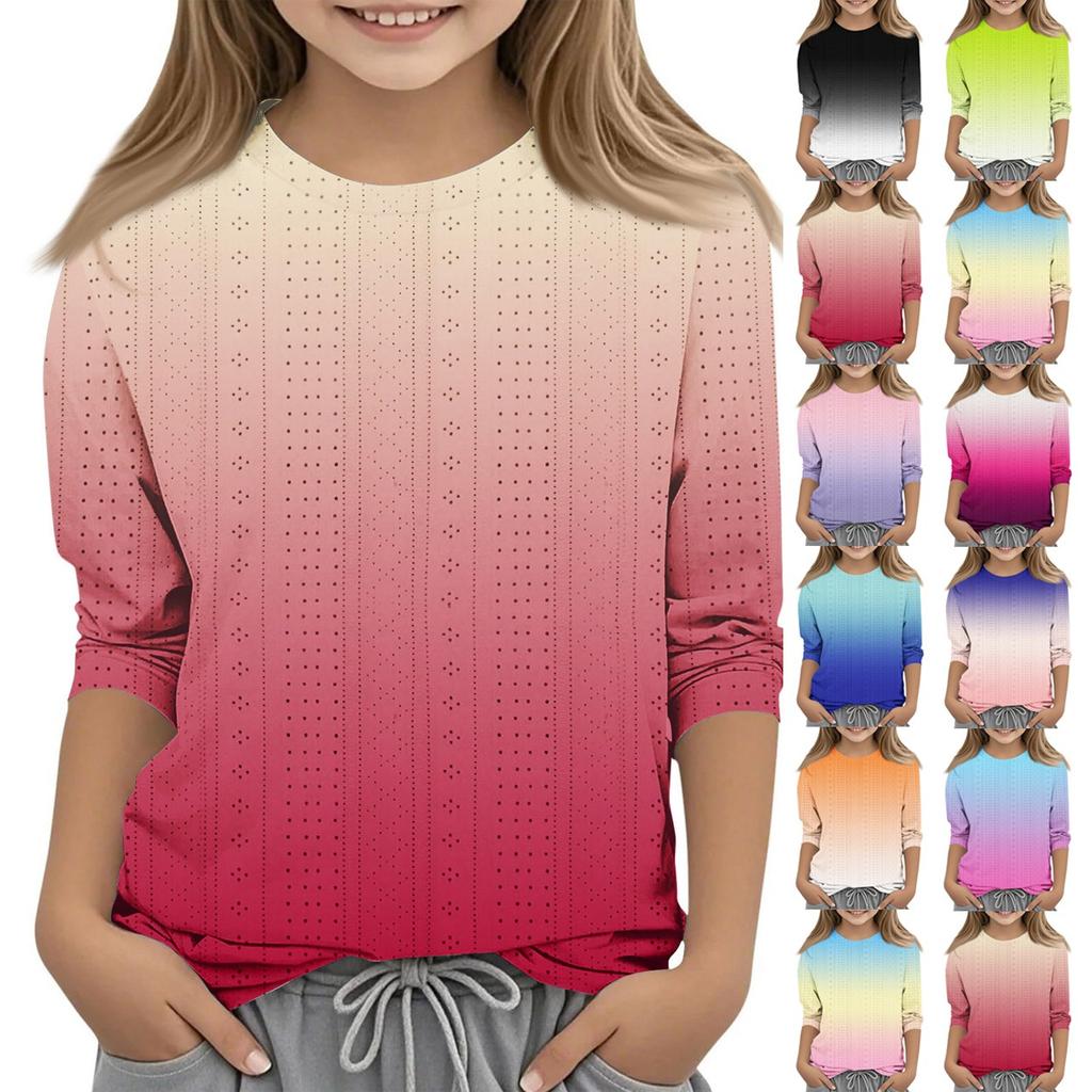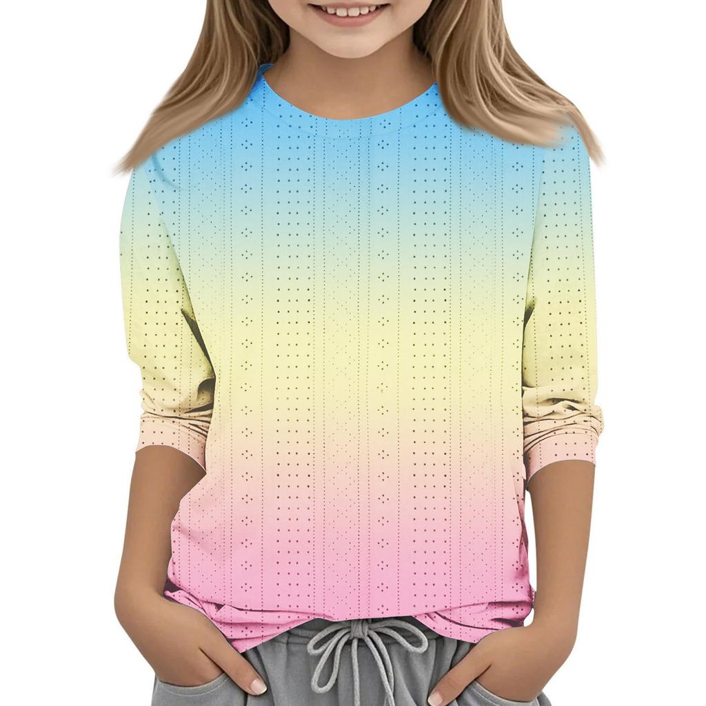 Топы с принтом для девочек 5-16 лет с круглым вырезом и рукавами 3/4 Футболки Модные топы Наряды Футболки