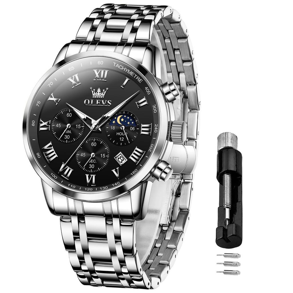 OLEVS кварцевые водонепроницаемые дата светящиеся популярные нержавеющая сталь браслет стильные часы аналоговые модные деловые классические часы для мужчин черные мужские