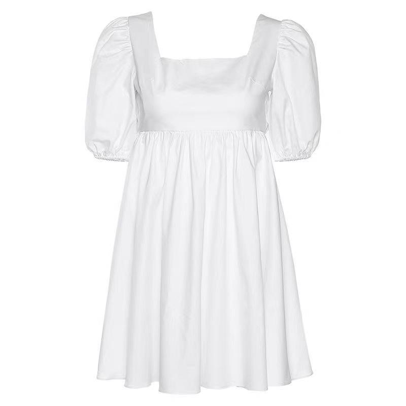 Летнее новое платье с французским квадратным вырезом, шнуровкой на спине и открытой спиной для женщин, сексуальное, облегающее и тонкое, А-образной формы, средней и длинной юбкой