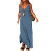 Женское летнее платье-комбинация без рукавов, повседневное платье макси с V-образным вырезом и разрезом, свободный пляжный сарафан, наряд для путешествий и отпуска