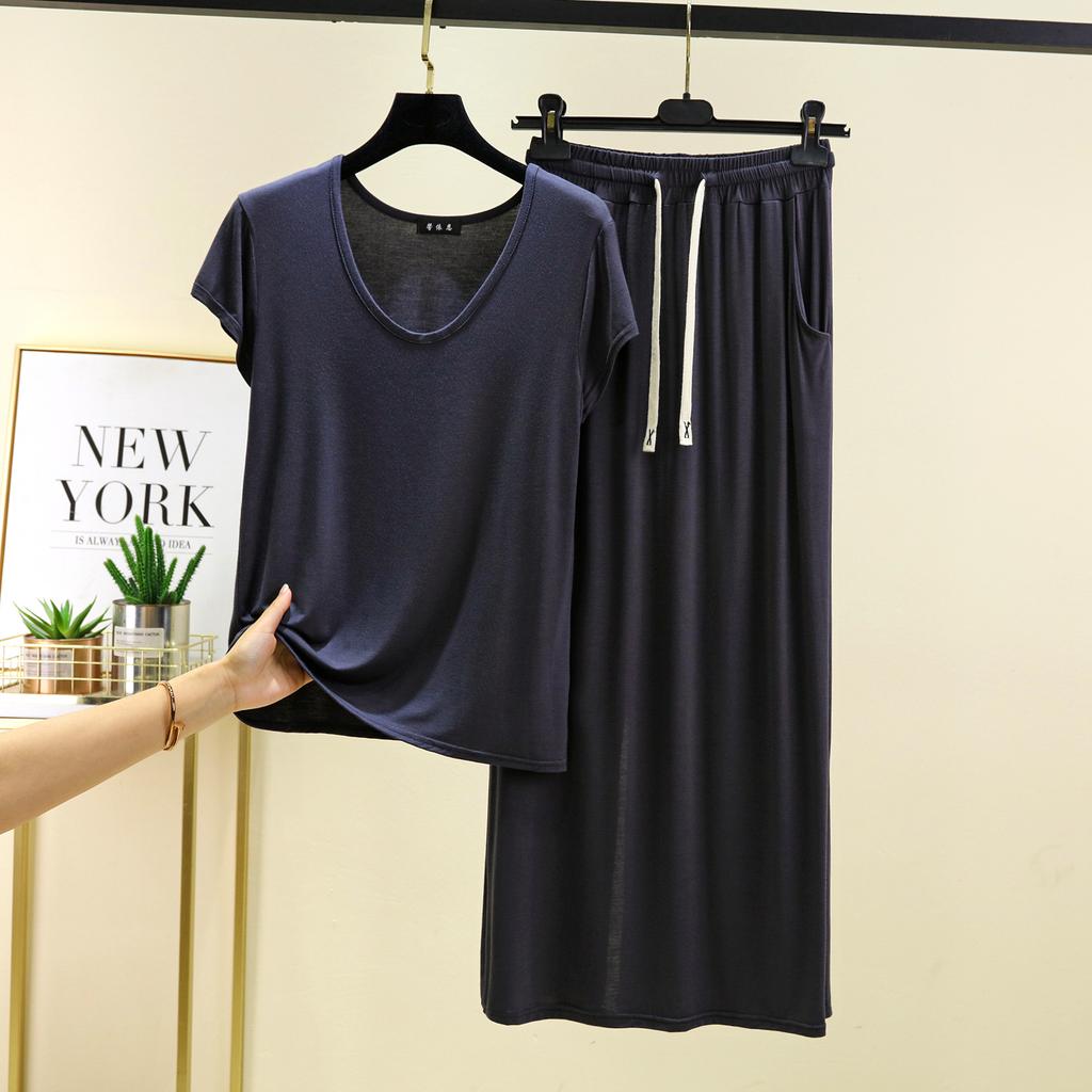 Домашняя одежда из модала, комплект из 2 предметов, футболки с коротким рукавом и длинная юбка, свободные комплекты модных платьев больших размеров, женский комплект