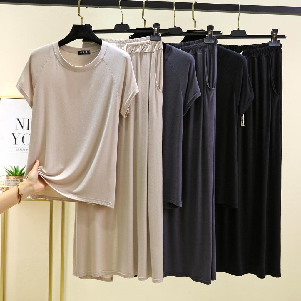 Футболки с коротким рукавом и длинным рукавом из модала с круглым вырезом и длинная юбка, комплект из 2 предметов домашней одежды больших размеров, свободные комплекты модных платьев, женские комплекты