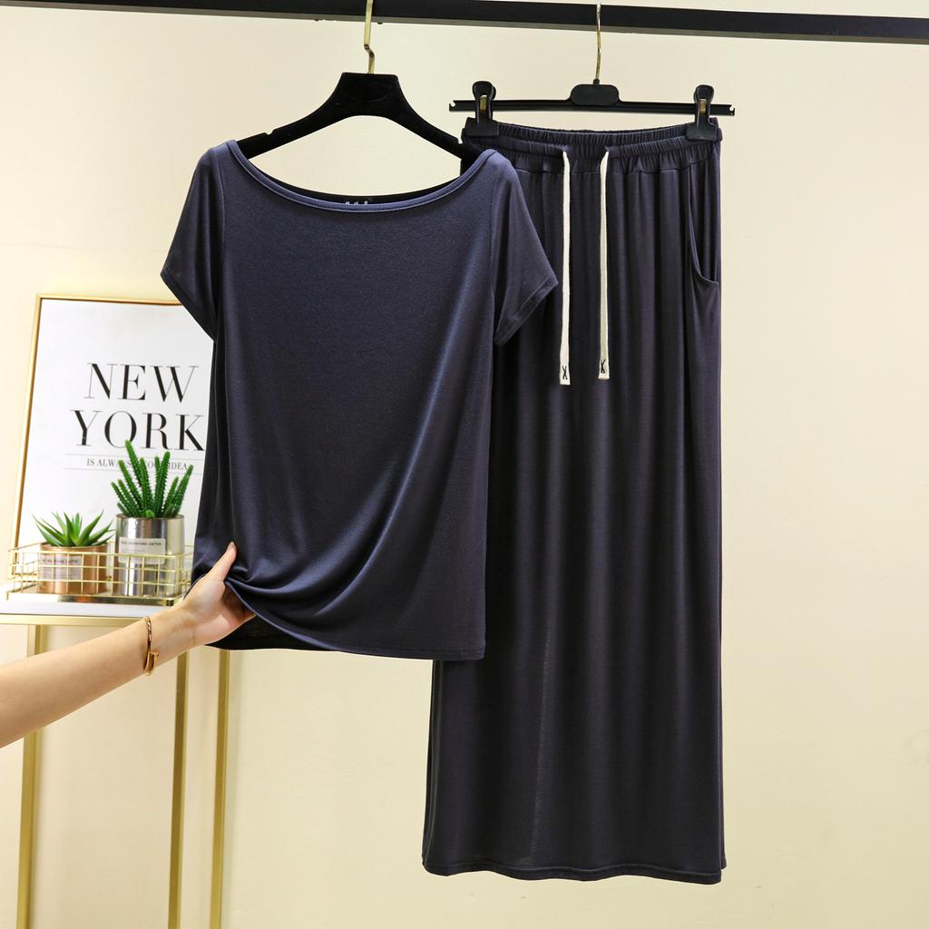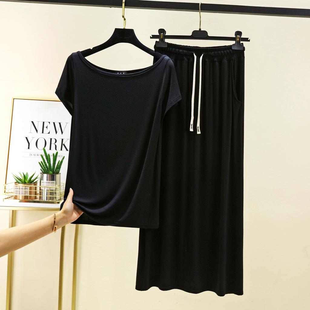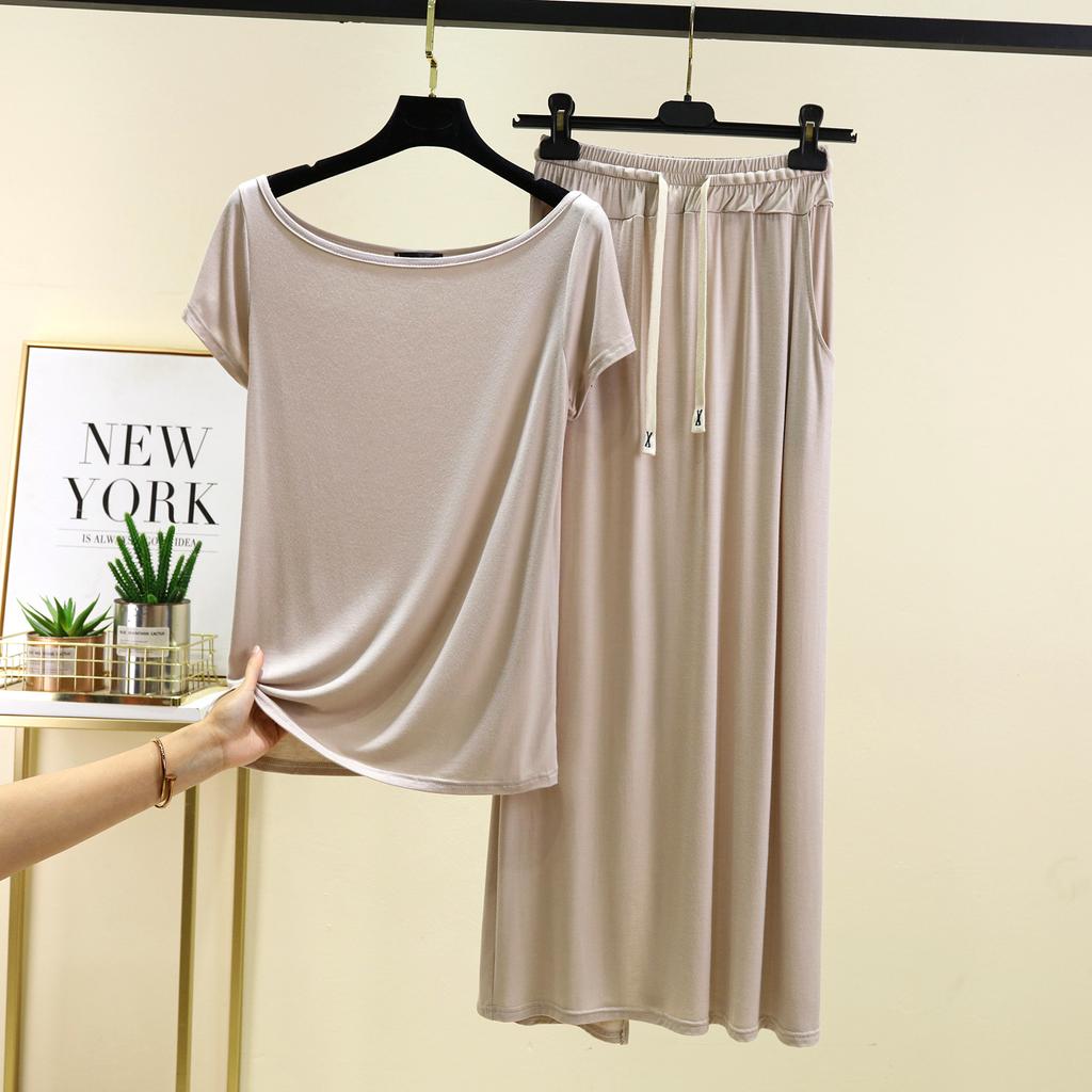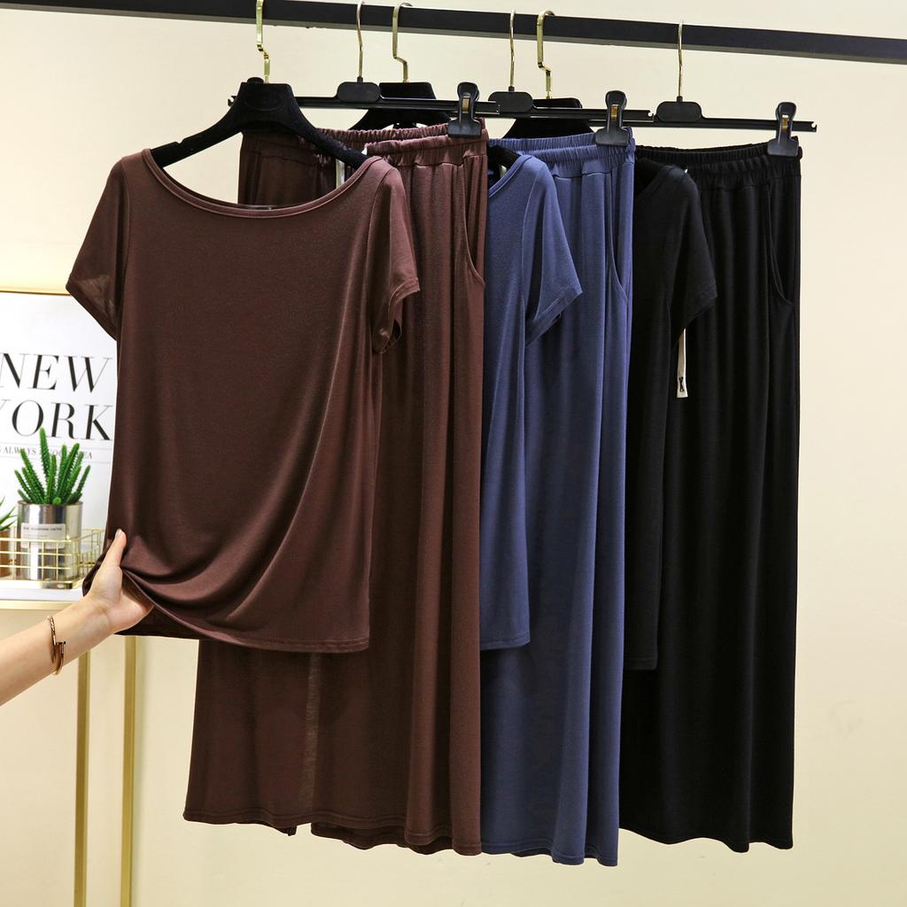 Футболки с коротким рукавом и длинной юбкой из модала, однотонная домашняя одежда, комплект из 2 предметов, свободные повседневные платья, комплекты для женщин