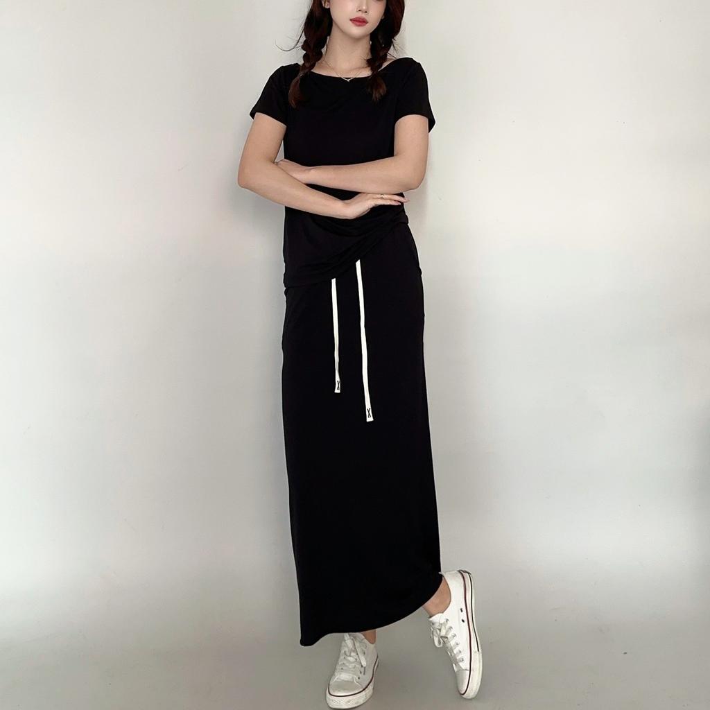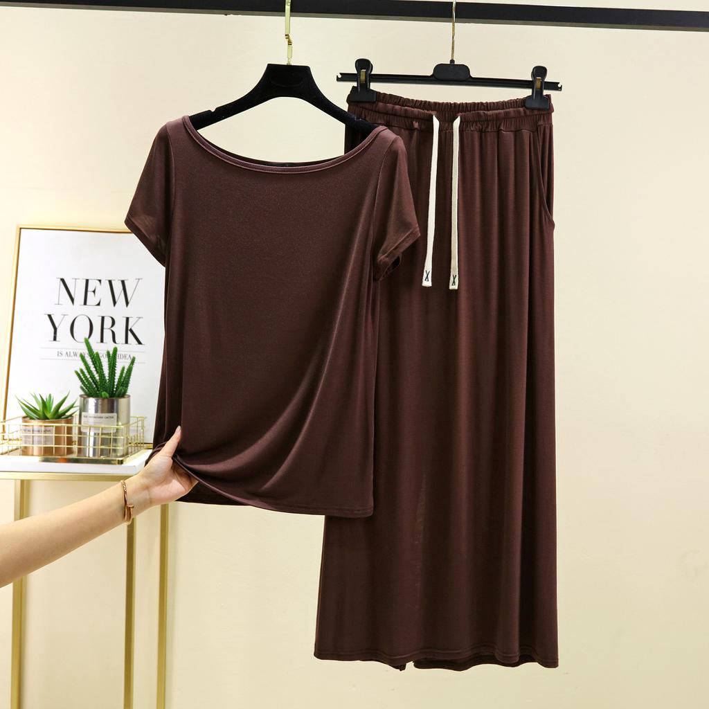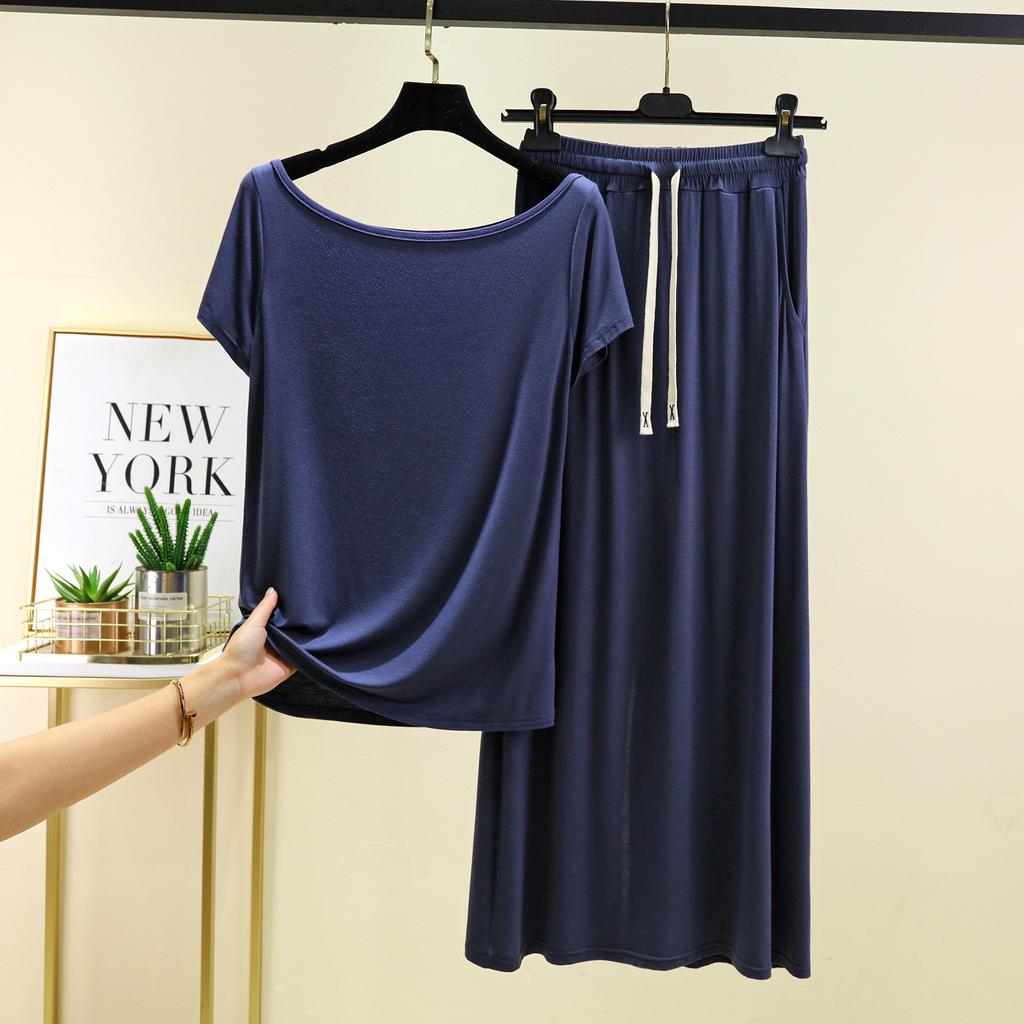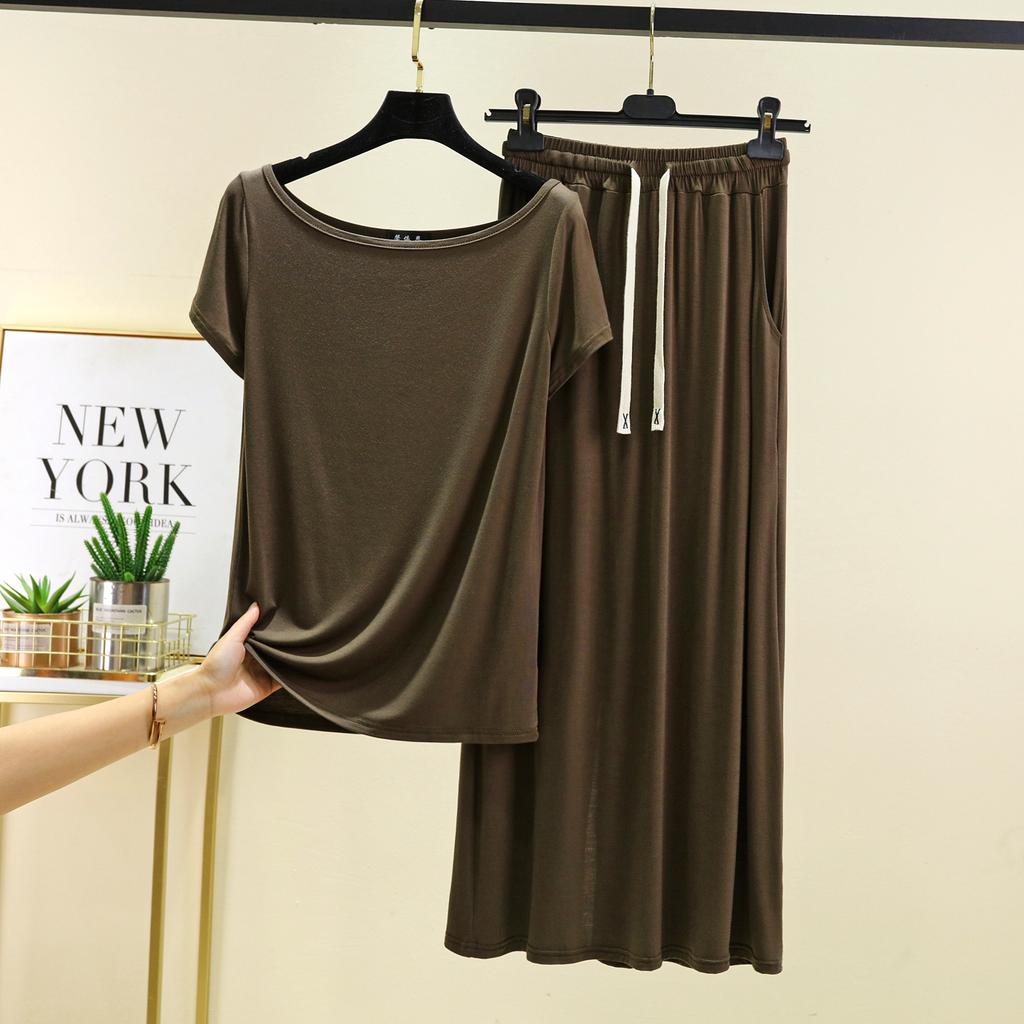 Футболки с коротким рукавом и длинной юбкой из модала, однотонная домашняя одежда, комплект из 2 предметов, свободные повседневные платья, комплекты для женщин