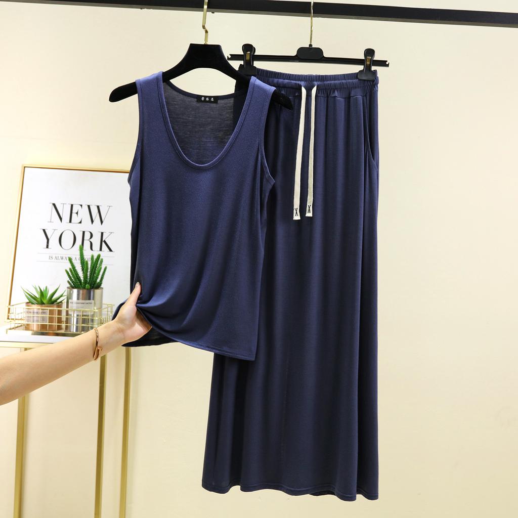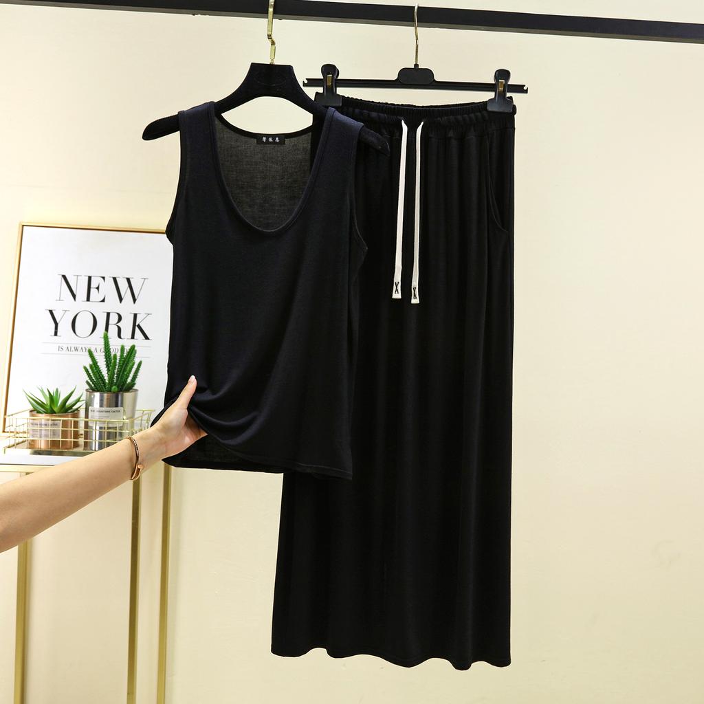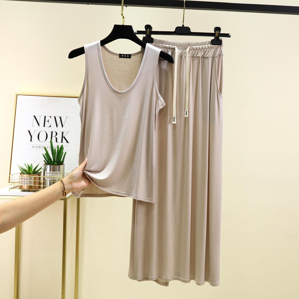 Модальные топы с глубоким U-образным вырезом и длинная юбка, однотонная домашняя одежда, комплект из 2 предметов, свободные повседневные платья, комплекты для женщин