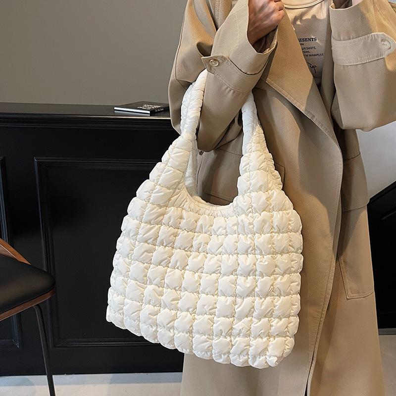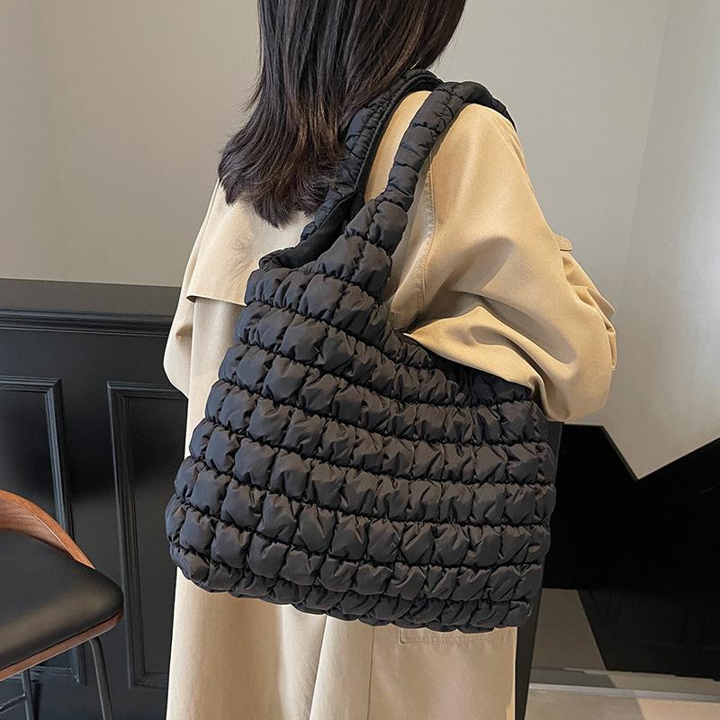 Смятая сумка-облако для женской куртки из хлопка, сумка-пузырь, большая вместительная сумка-тоут, сумка через плечо для поездок на работу, плиссированная сумка