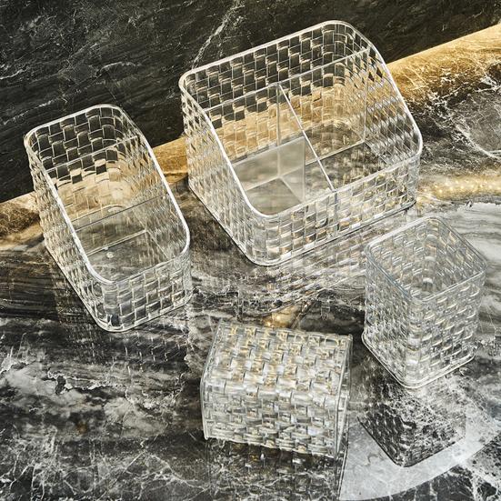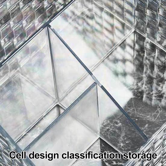 Благодаря минималистичному и прозрачному дизайну этот ящик для хранения прекрасно впишется в любой стиль домашнего декора.. Его элегантная эстетика не только повышает функциональность вашего туалетного столика, но и добавляет нотку изысканности вашему пространству.