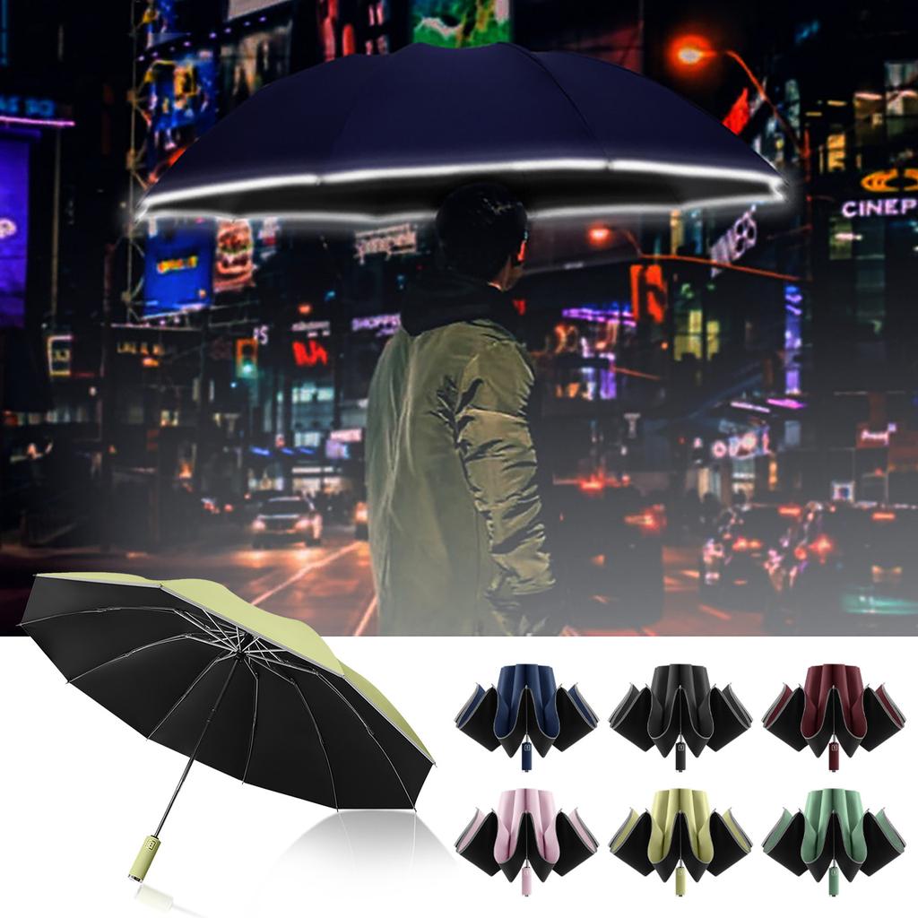 Автоматический складной ветрозащитный зонт с защитой от УФ-излучения и светоотражающими полосками