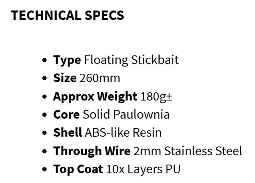 Malosi VA260F-SI Vader 260F Плавающая приманка для суши (1693 г.)