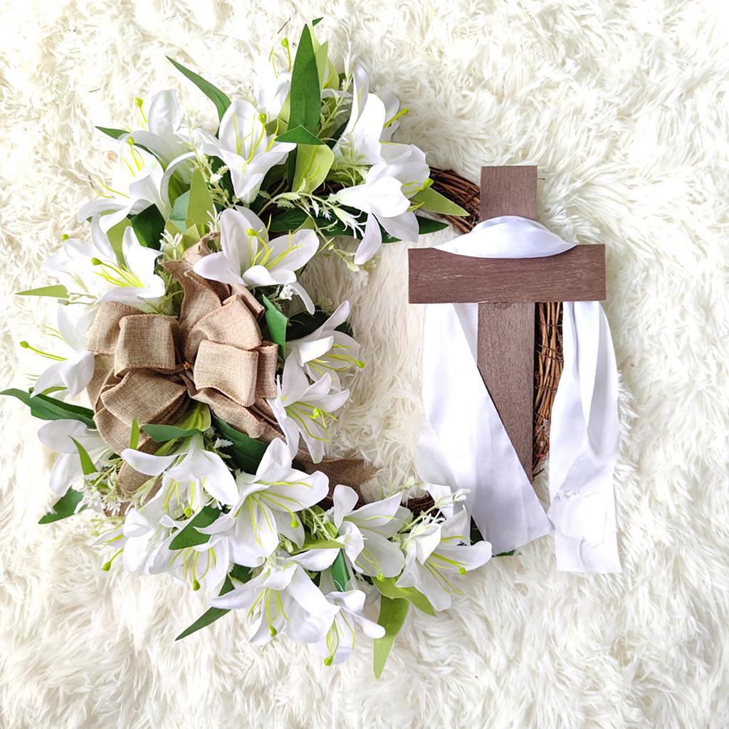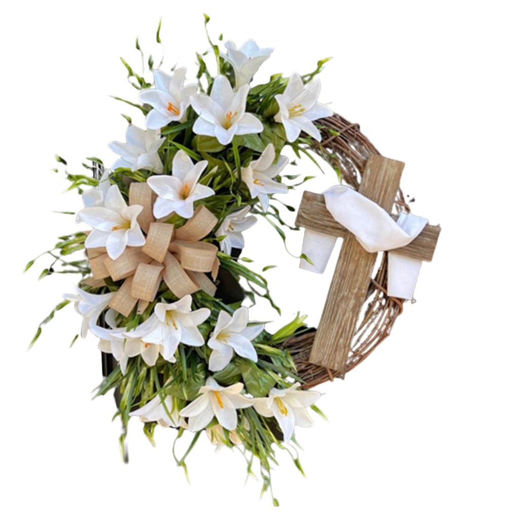 Весеннее украшение Пасхальный венок с крестом и галстуком-бабочкой, деревенское украшение из виноградной лозы Весенний венок DIY Пасхальное украшение венок для входной двери