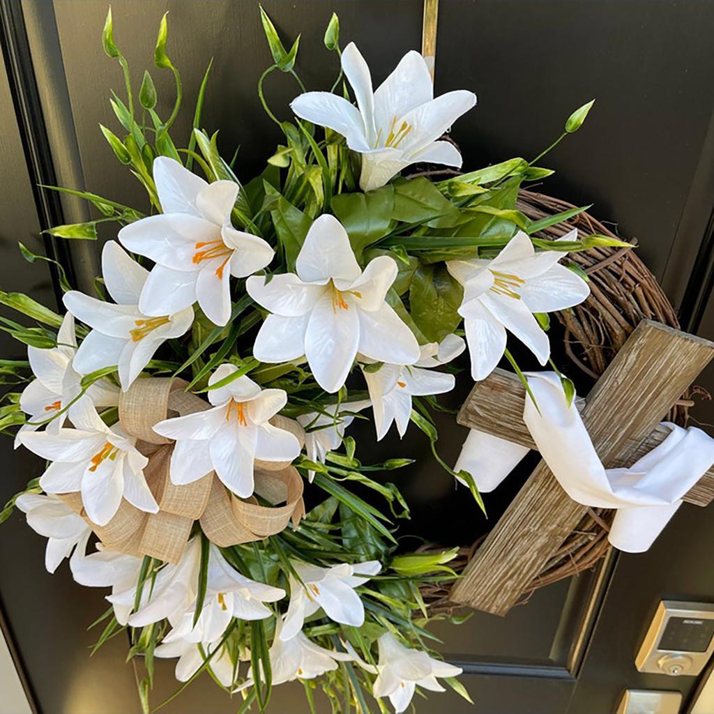 Эта входная дверь весенней цветочной корзины очень особенная, цветы никогда не увядают, красивые и реалистичные. Венки можно использовать как в помещении, так и на открытом воздухе, а также служить универсальным декоративным аксессуаром.
