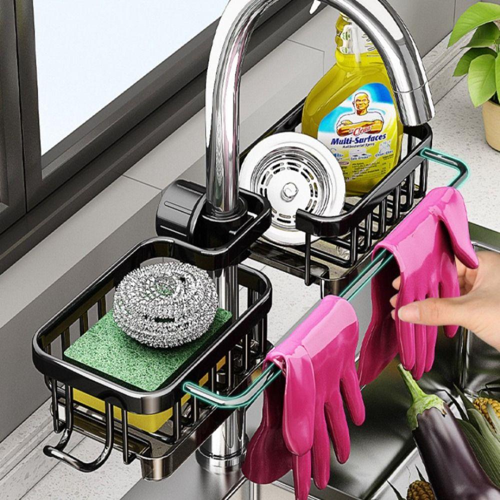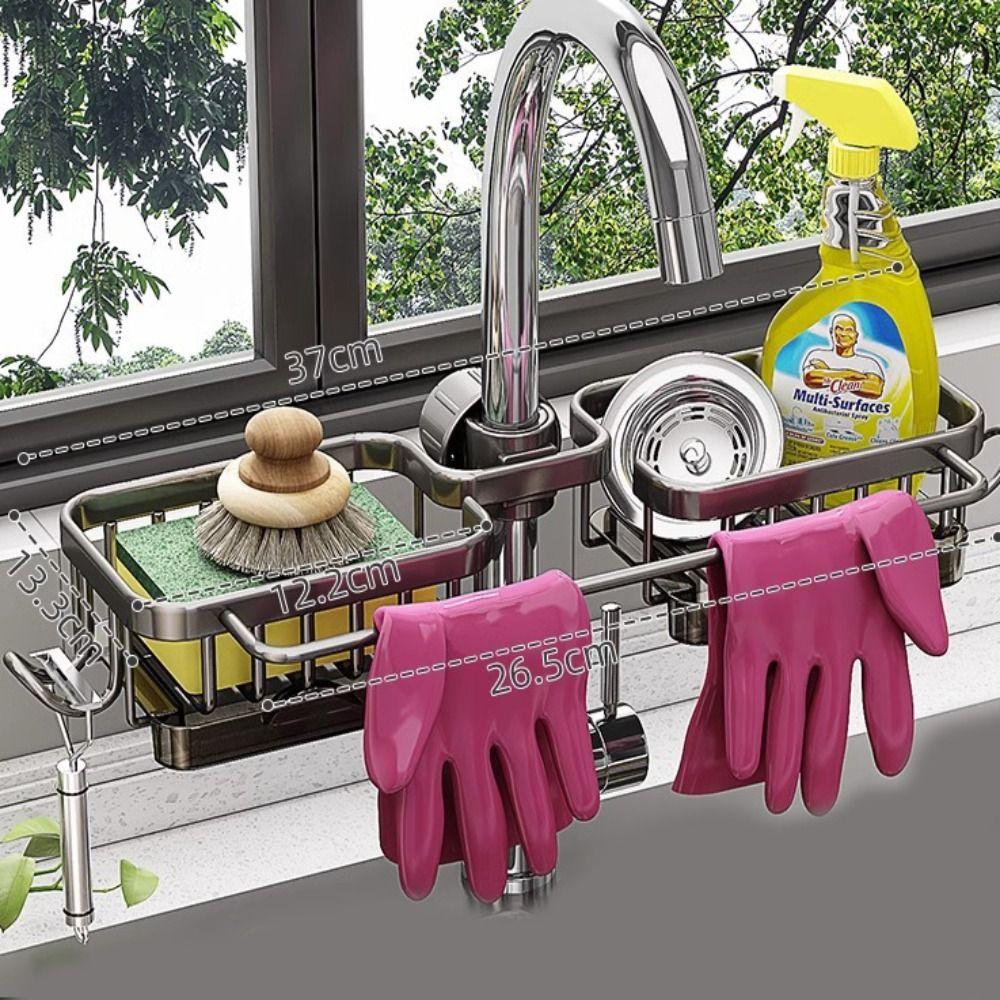 Органайзер для ванной Комната Корзина для хранения губок Космический алюминий Держатель для кухонного смесителя