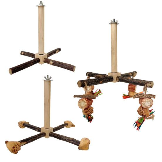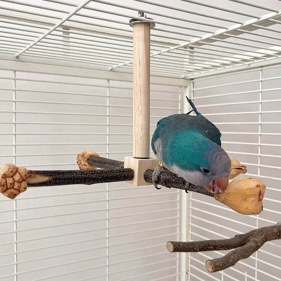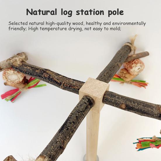 Вращающиеся на 360 градусов опоры: Эта жердочка, оснащенная четырьмя прочными опорами, которые свободно вращаются во всех направлениях, идеально сочетает в себе отдых, игру и физические упражнения.. Улучшите взаимодействие с птицами, вручную вращая жердочку, способствуя установлению близости и связи, одновременно обеспечивая длительное развлечение и волнение.