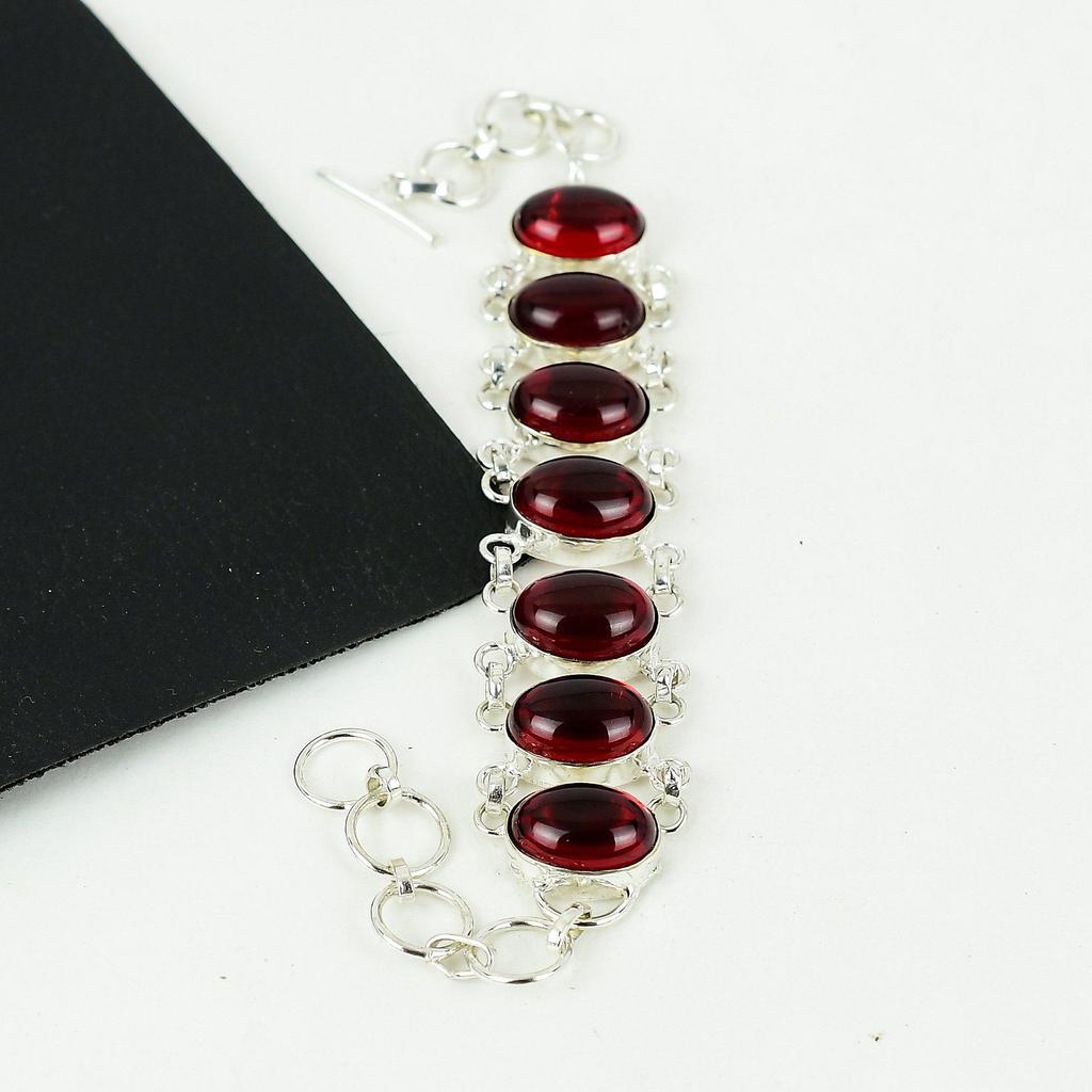 Красивый браслет из красного граната ручной работы из стерлингового серебра 925 пробы, браслет из красного граната для жены, браслет унисекс, подарок на День благодарения