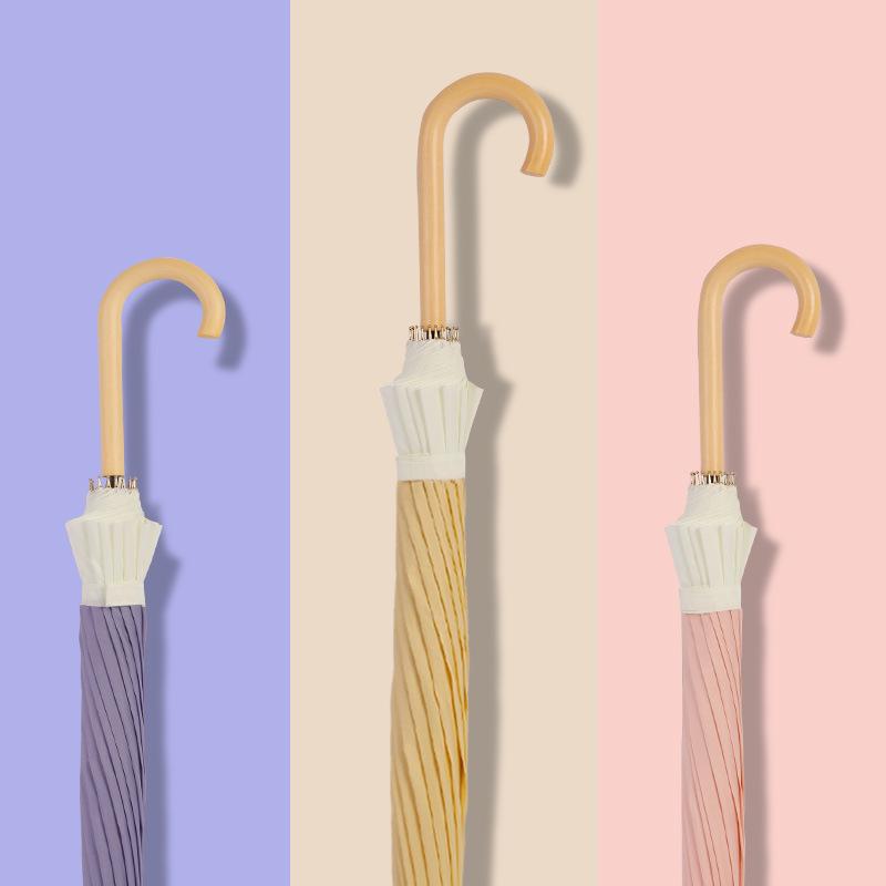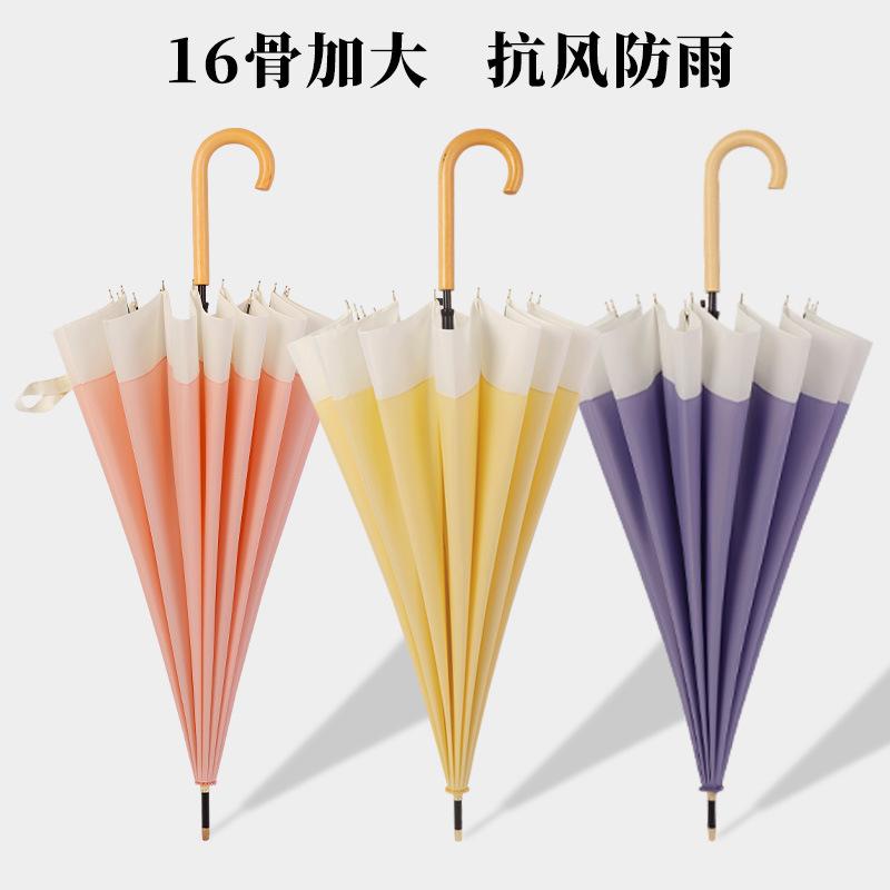 Креативный и простой зонт с длинной ручкой из 16 костей, однотонный край, небольшой изогнутый зонт с крючком, ретро-зонт