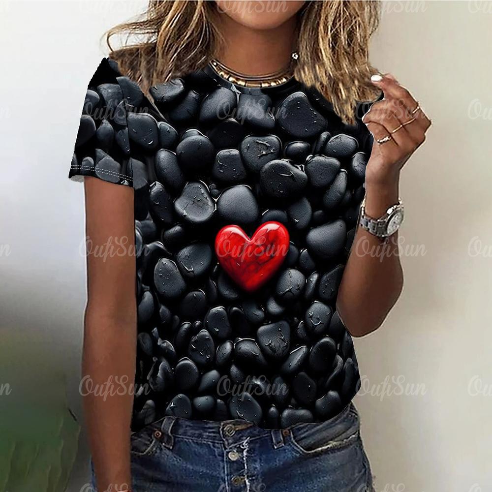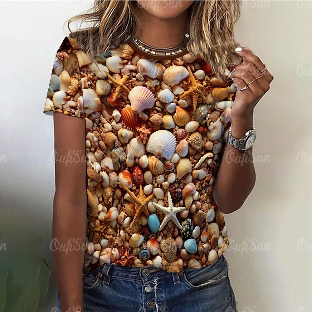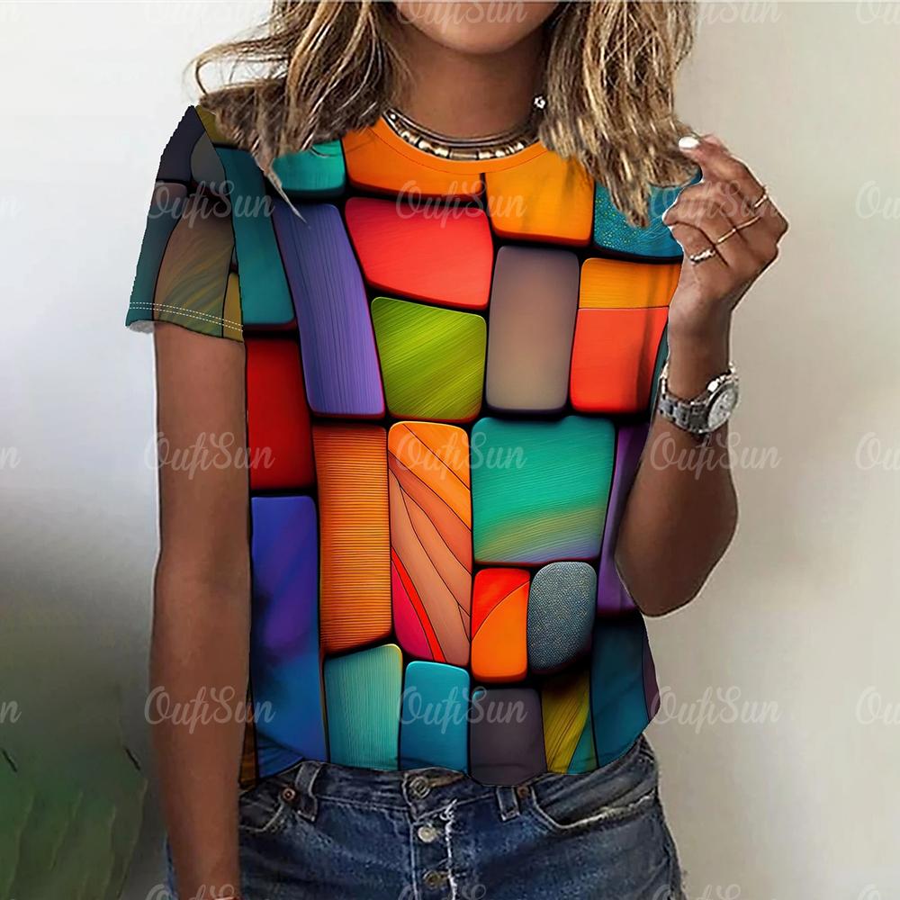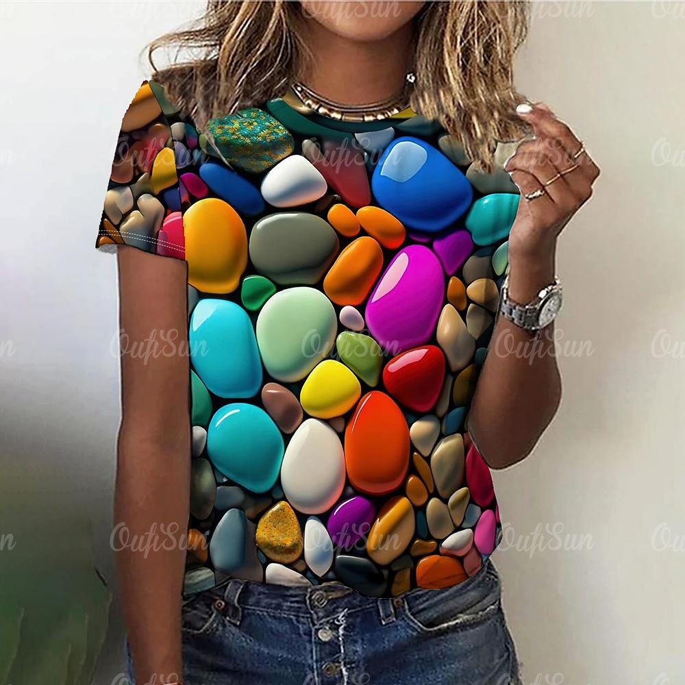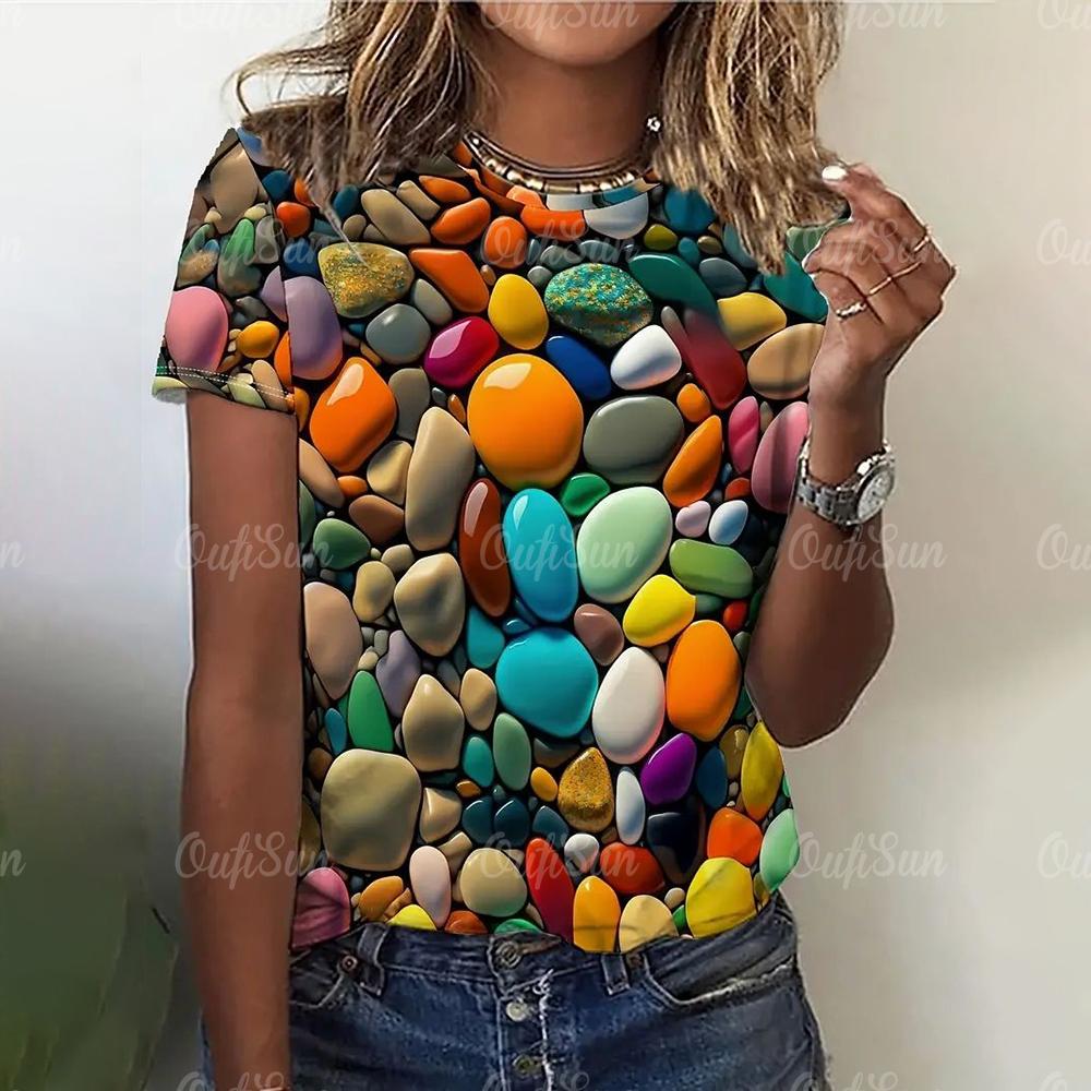 Футболка с 3d красочными камнями и принтом для женщин, летняя модная повседневная свободная футболка, большие топы с короткими рукавами и круглым вырезом, дизайнерская одежда