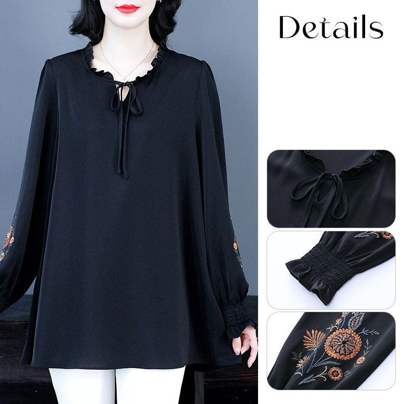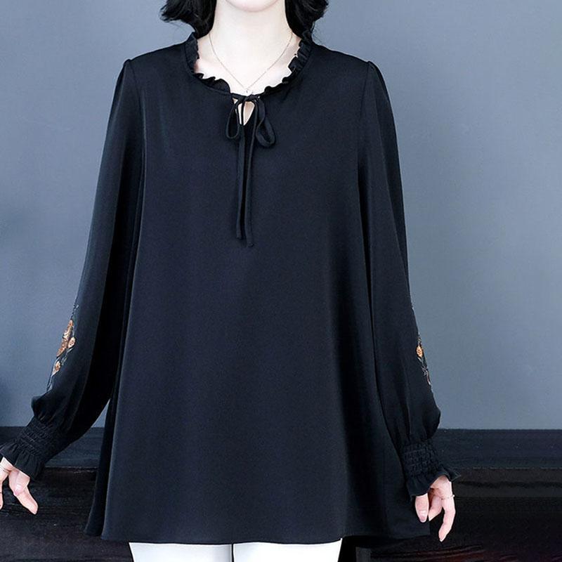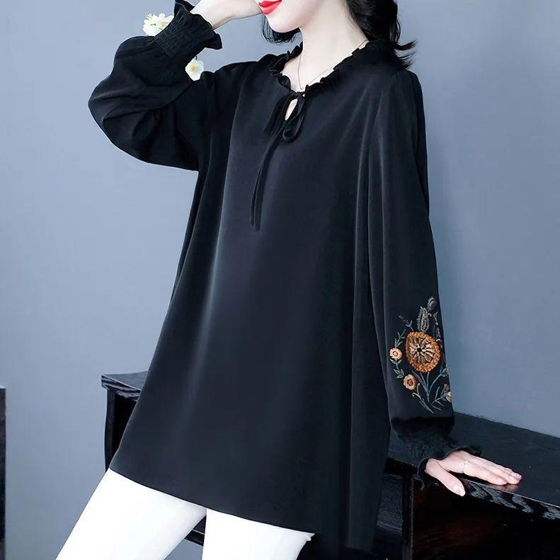 Весенняя женская блузка больших размеров, свободная, с длинным рукавом, вышитая блузка
