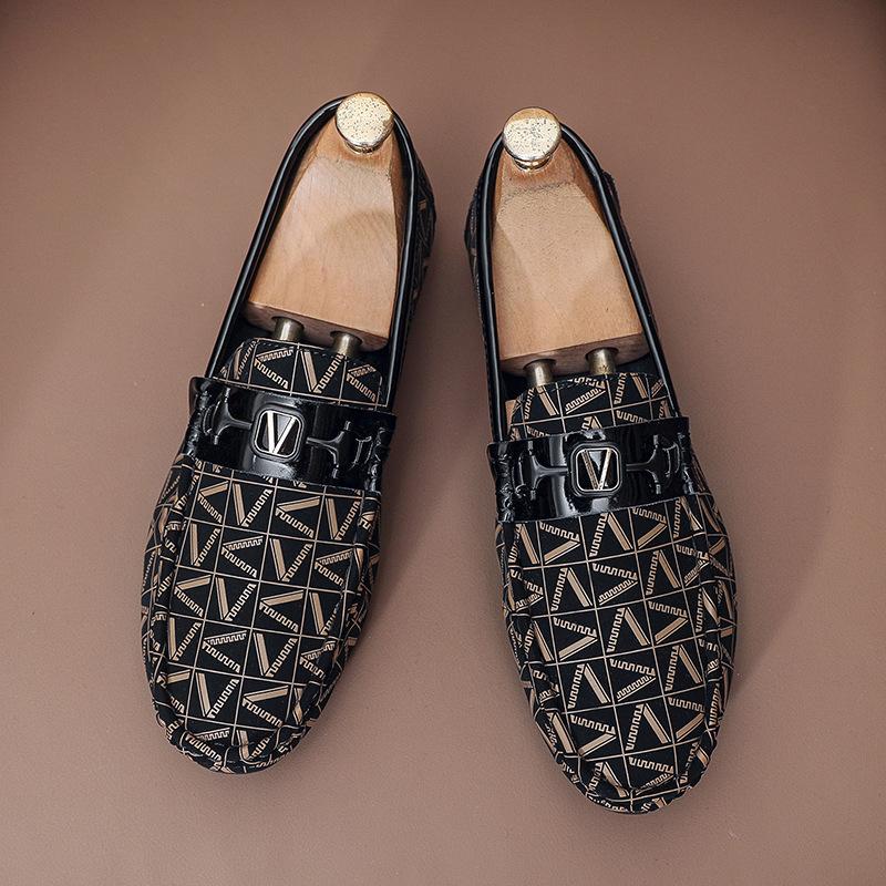 Новые туфли Bean для мужчин, повседневные модные туфли из мягкой кожи с мягкой подошвой и модным принтом, высококачественные мужские туфли Le Fu
