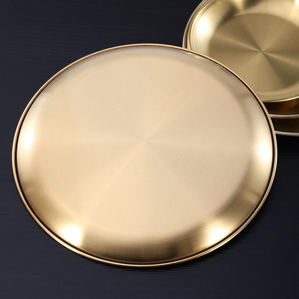 Тарелка из нержавеющей стали, золотистая, металлическая, круглая, обеденная тарелка, многоразовый, нержавеющий, сервировочный поднос для домашней кухни, вечеринки