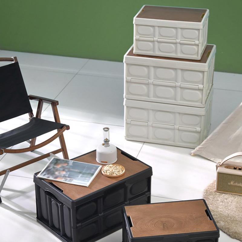 42*28*24 см, складной ящик для хранения вещей для дома и кемпинга с деревянной крышкой, многофункциональный ящик для хранения мусора на открытом воздухе.