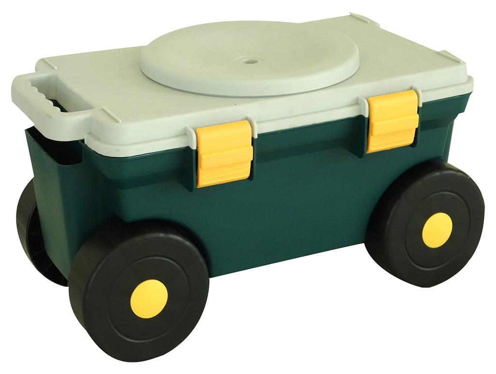 «Садовая тележка с поворотным сиденьем Living Out» — это универсальная садовая тележка, разработанная для того, чтобы сделать задачи, выполняемые в низком положении, такие как садоводство, сбор урожая или мытье автомобиля, более удобными и эффективными.
