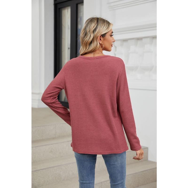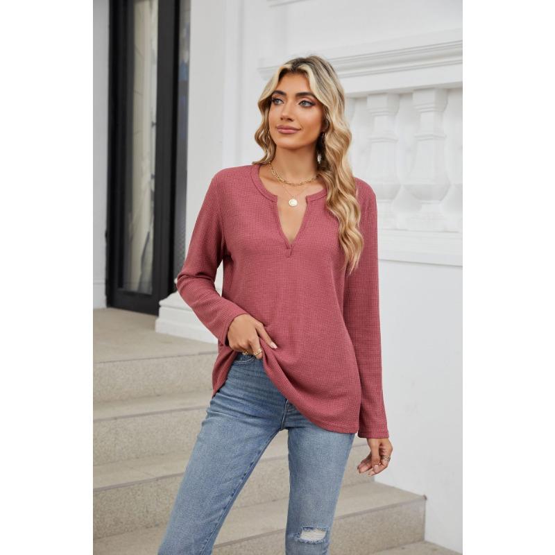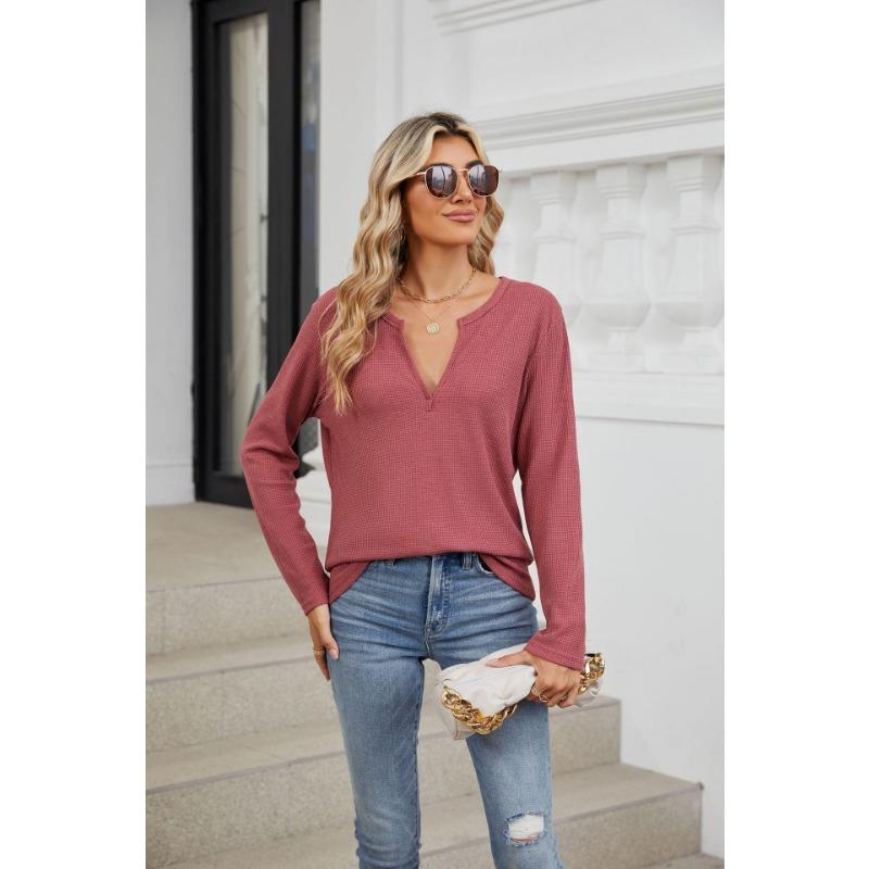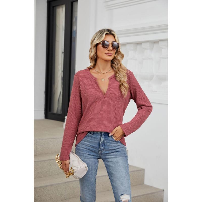 Весенне-осенняя женская блузка свободного кроя с V-образным вырезом и длинными рукавами, однотонные повседневные топы