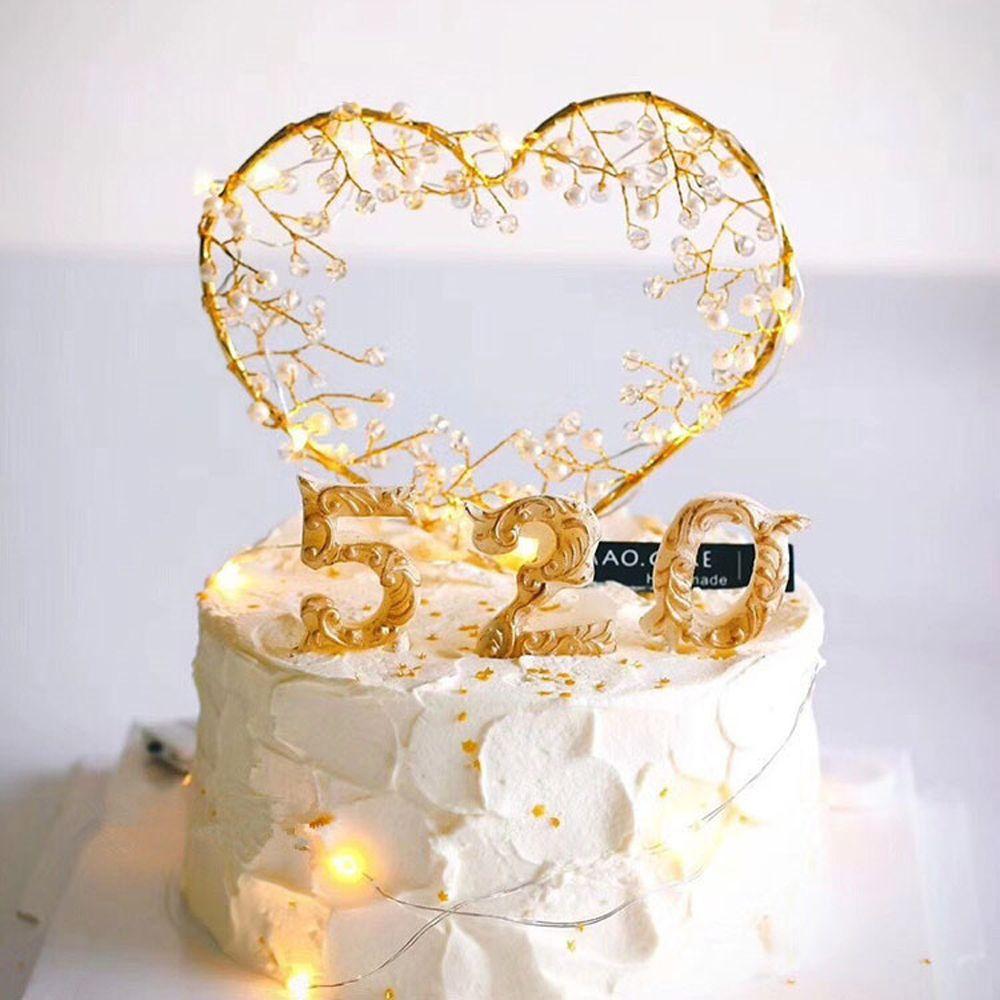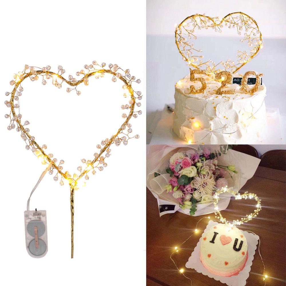 LED Event Supplies Cupcakes Pearl Cake Toppers Happy Birthday Cake Decorating Tool Party Decoration