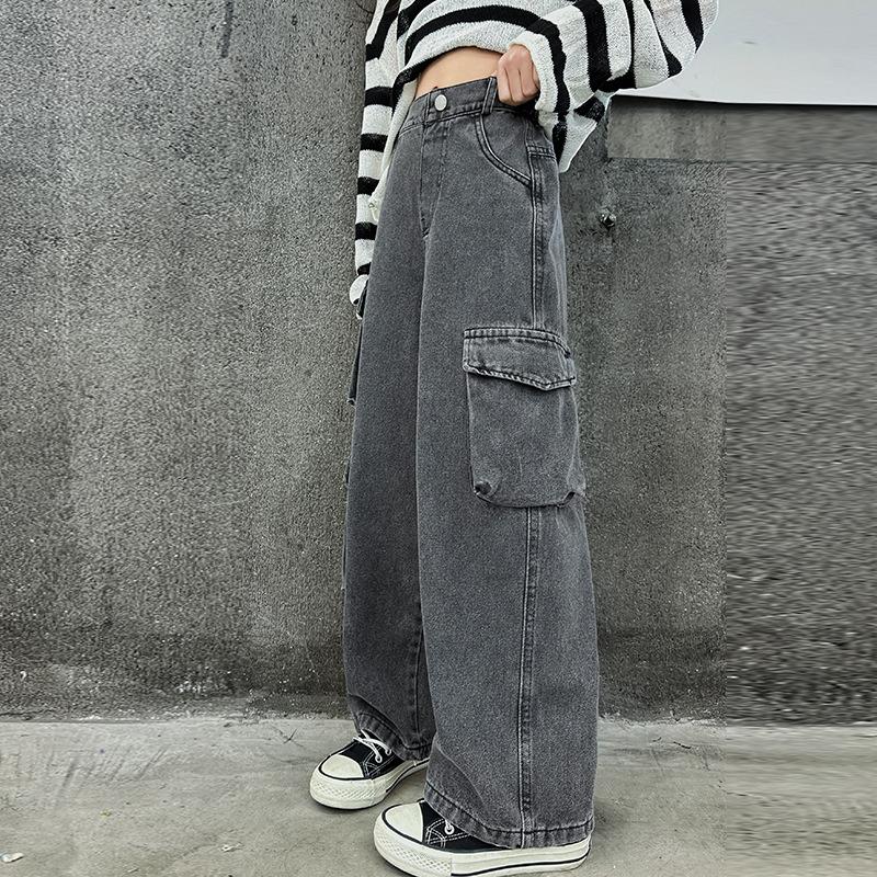 Джинсы для девочек, весенняя одежда, комбинезоны с карманами для больших детей, весенний детский стиль вестерн, брюки для больших детей